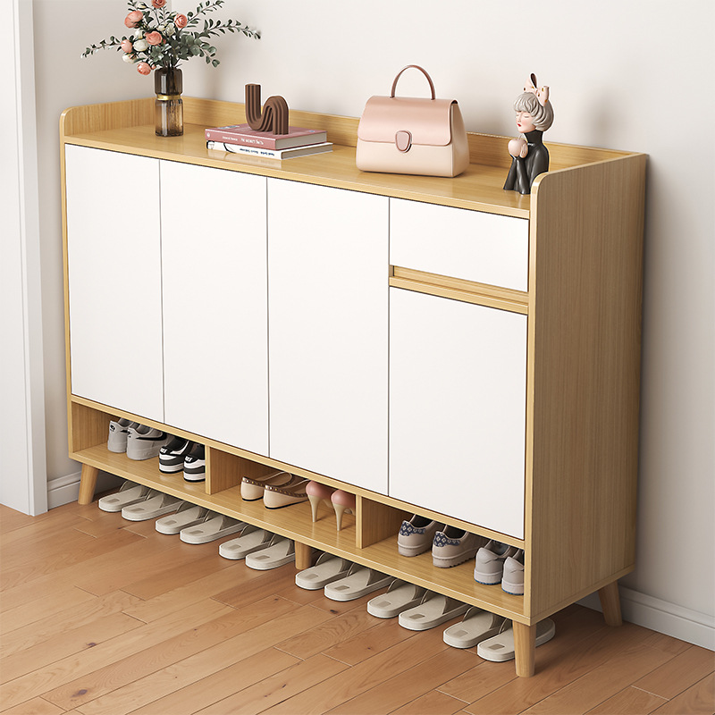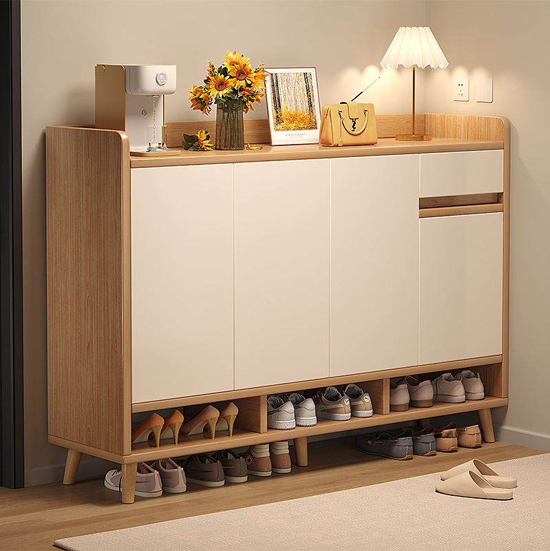 無垢材脚の靴箱、家庭用玄関収納棚、玄関キャビネット、小スペース向け大容量収納キャビネット