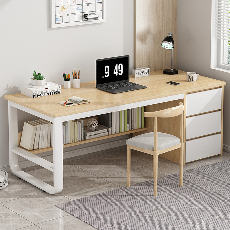 無垢材のコンピューターデスク、家庭用、本棚付き一体型デスク、寝室、学生用ライティングデスク、オフィス用シンプルデスク
