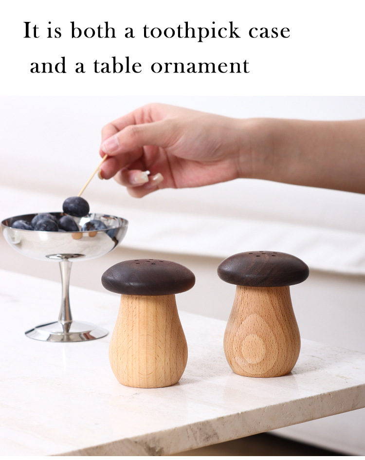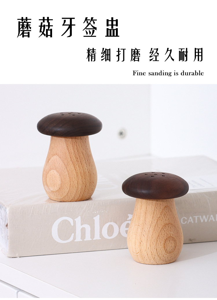 创意实用实木牙签筒家用牙签盒简罐可爱蘑菇牙签罐可定 制 logo