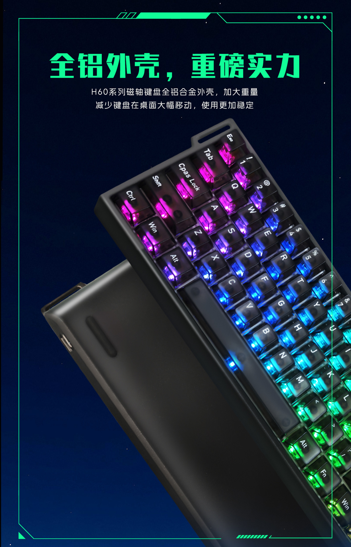 磁轴键盘铝坨坨61键客制化键盘高颜值有线电竞游戏机械键盘磁轴