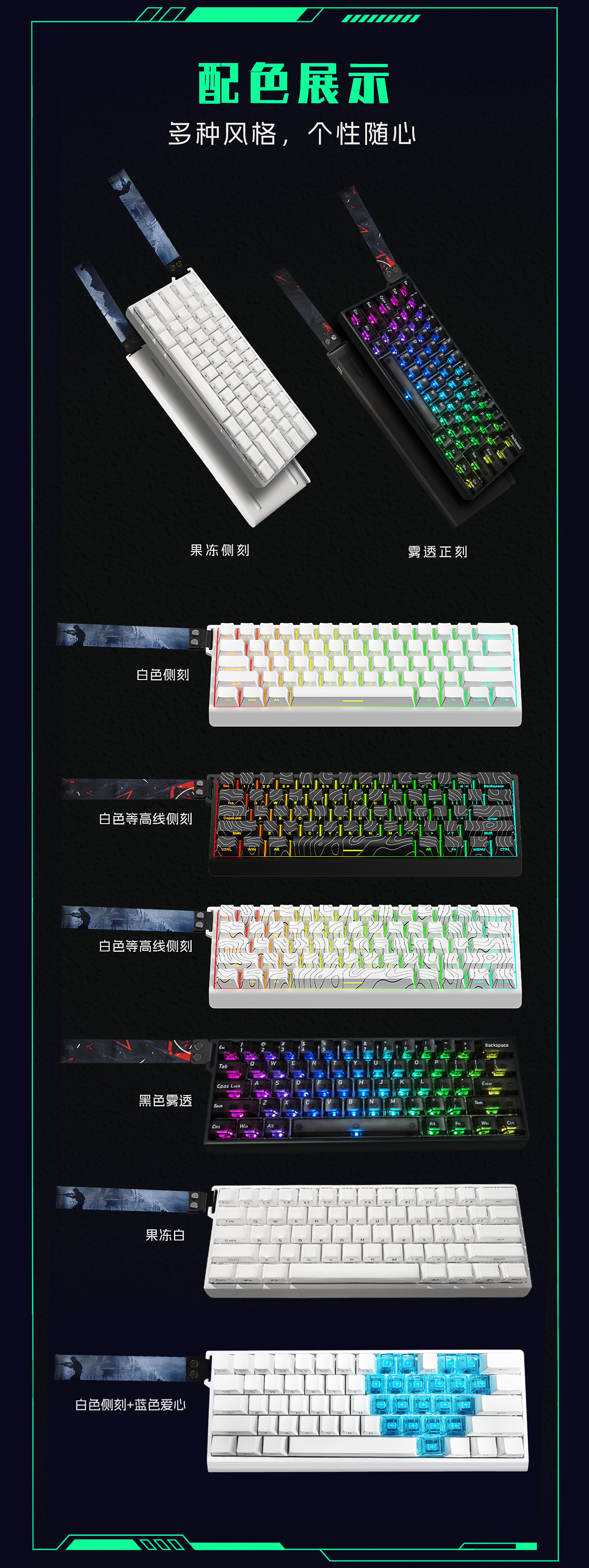 颜色 白色水晶磁轴键盘(冰蓝轴),黑色雾透磁轴键盘(冰蓝轴),白色侧刻爱心磁轴键盘(冰蓝轴),白色侧刻磁轴键盘(冰蓝轴)