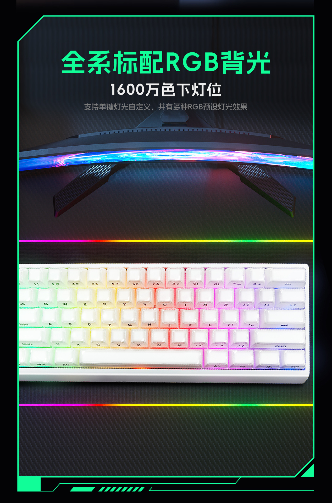 电脑键盘跨境RGB光61键便携游戏键盘商务办公电竞机械手感小键盘