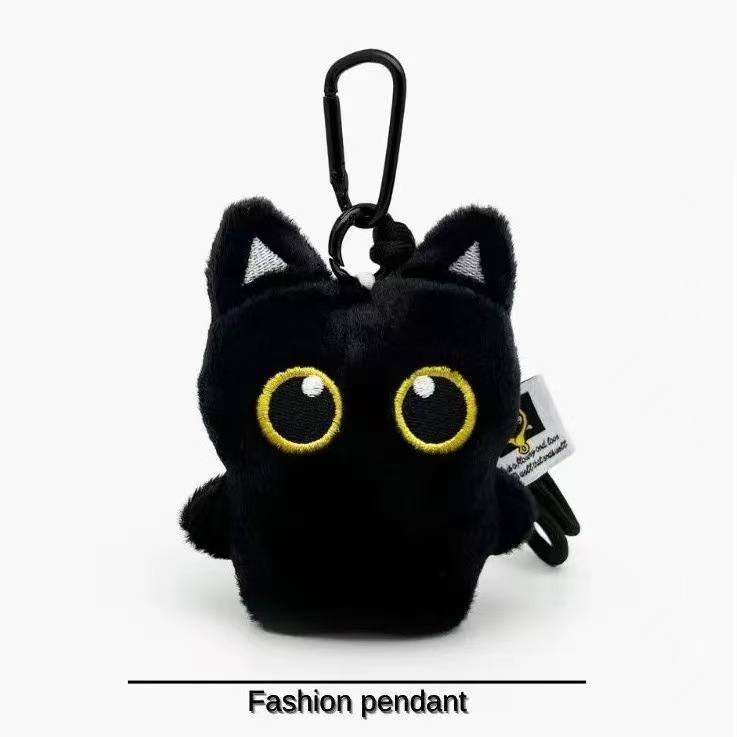 卡通黑猫玩偶毛绒公仔挂件小猫咪玩具挂饰可爱礼物吱吱叫包包配饰