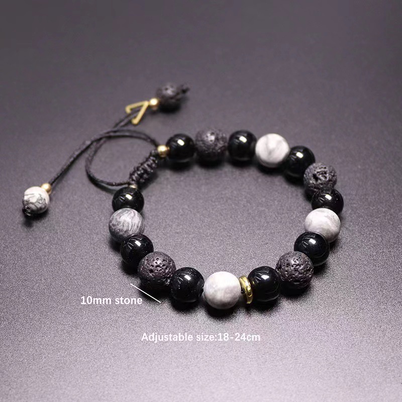 2023新型黒曜石ブレスレット男感火山石ビーズ手串彼氏プレゼントメーカー卸売り
