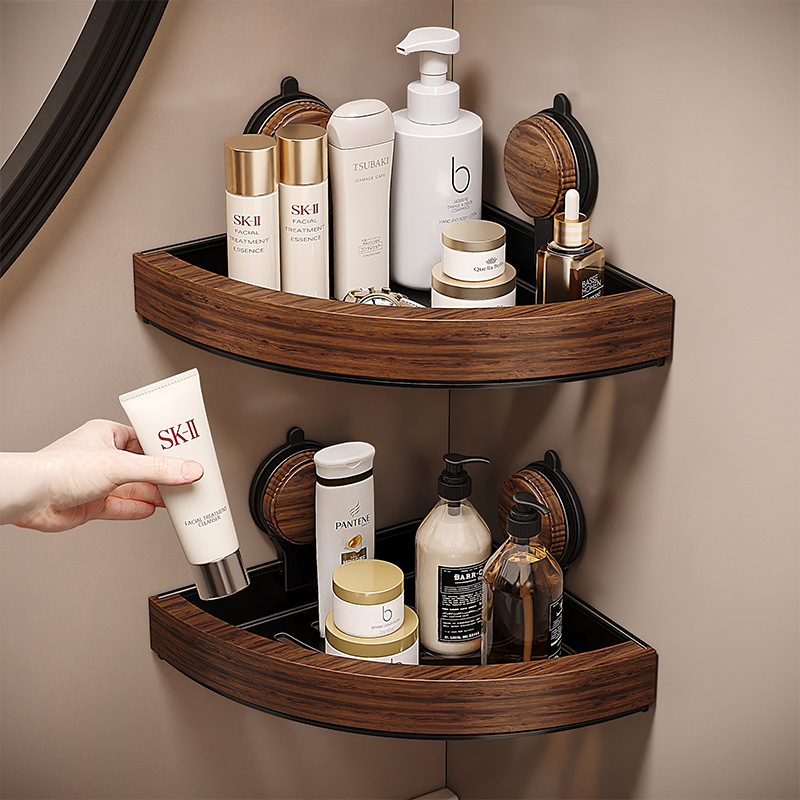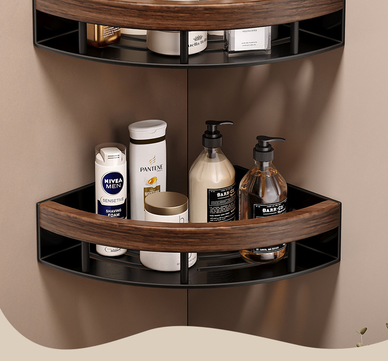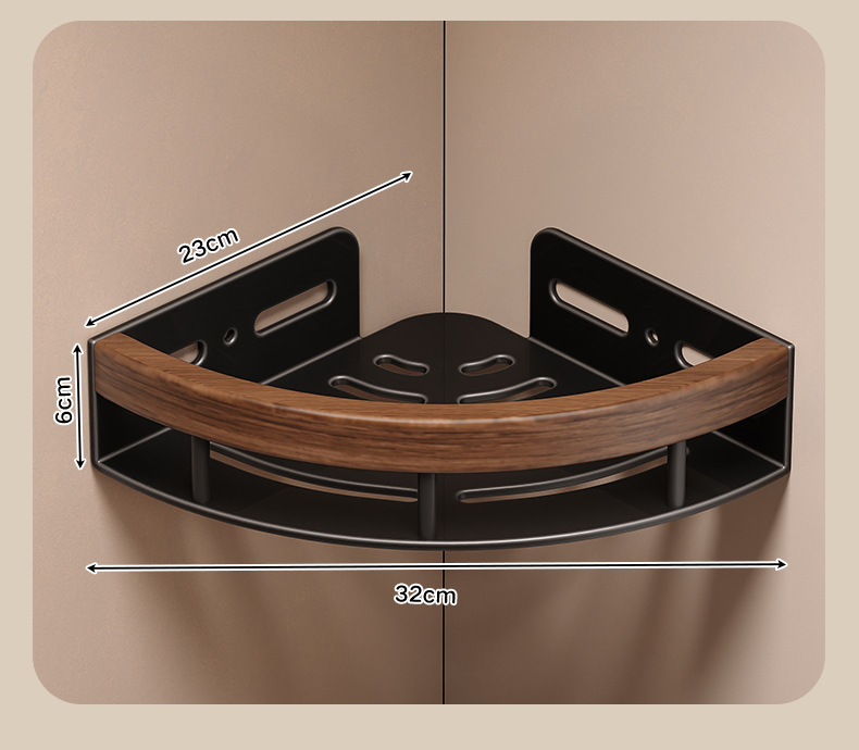 胡桃木浴室三角置物架免打孔卫生间淋浴房洗漱台厕所转角收纳挂架