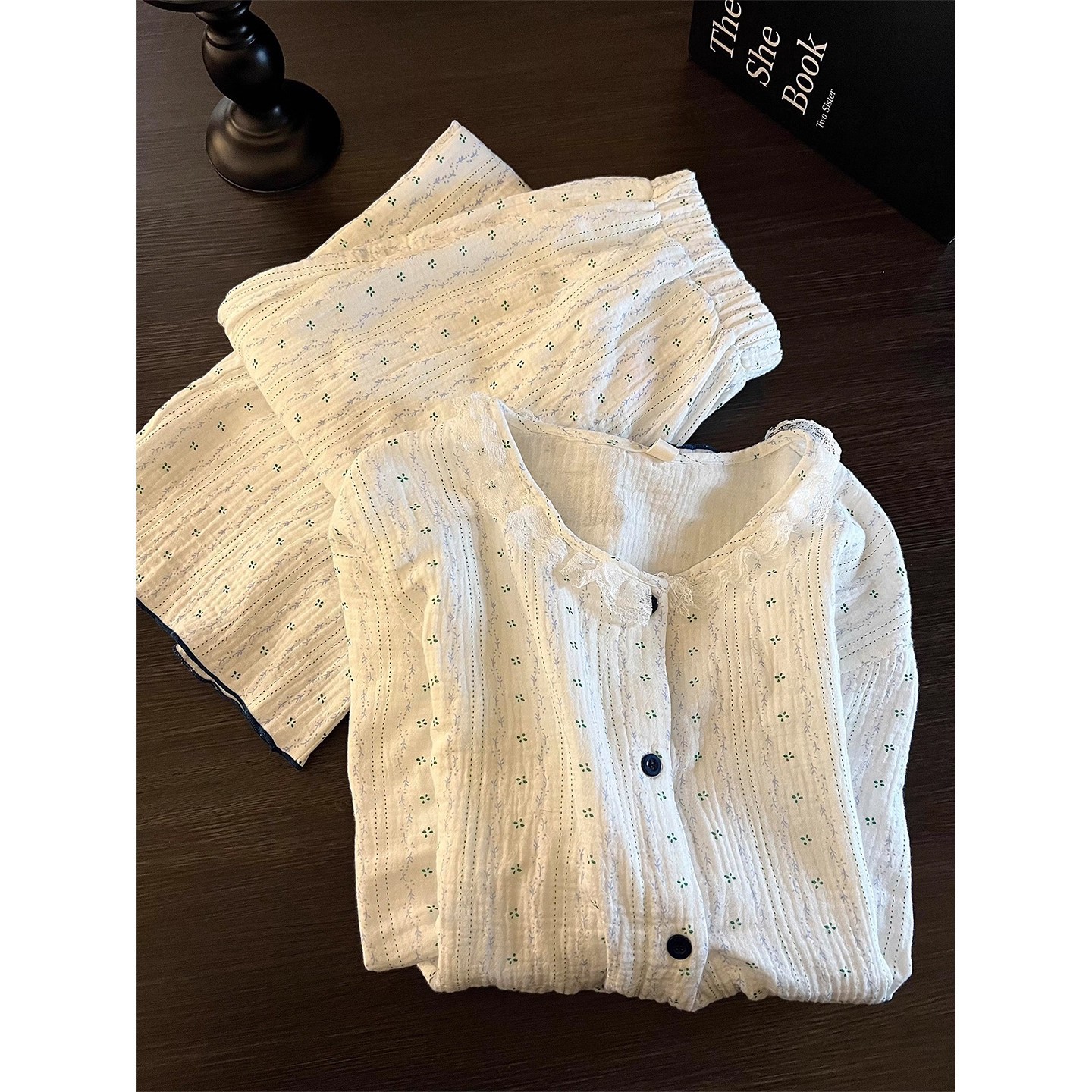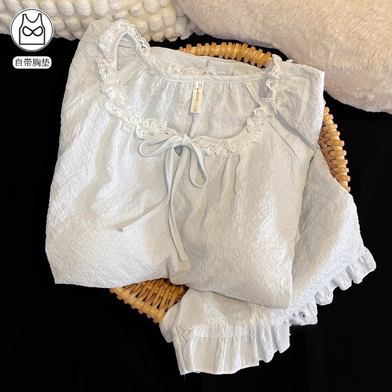 クラウドコットンガーゼキャミソールパジャマレディース夏レースセットアップins越境ホームウェア高级感