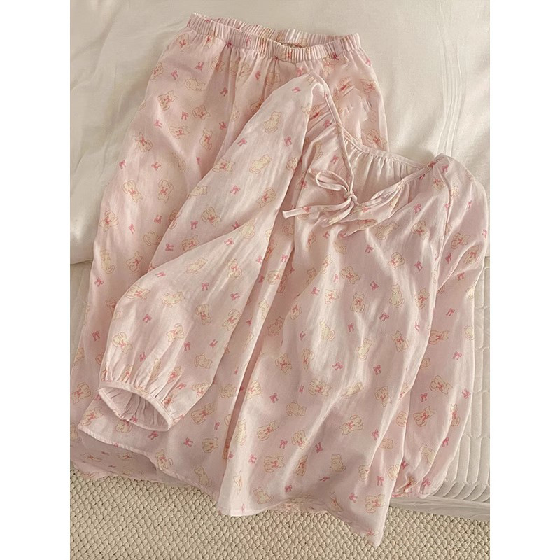 布帛ガーゼパジャマレディース长袖セット春秋学生カーディガンinsホームウェアゆったり可爱い高级感