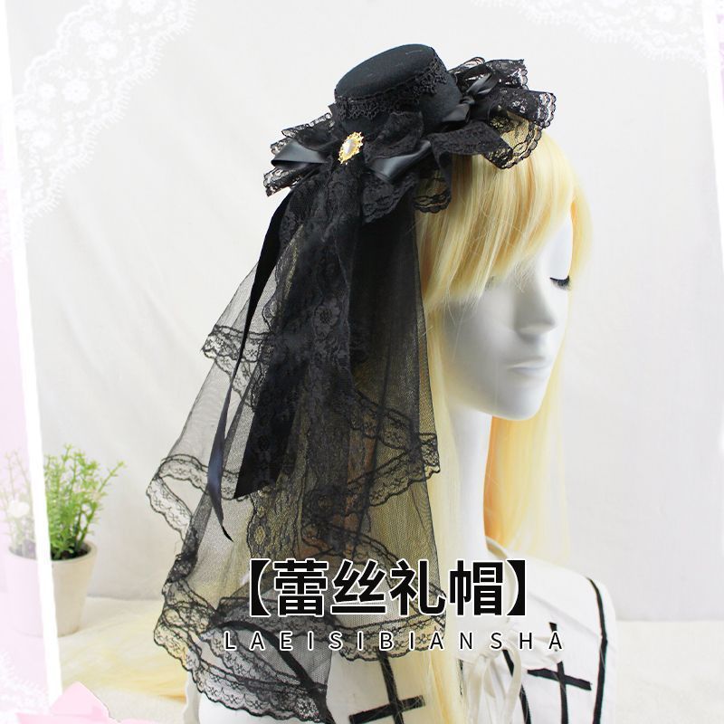 洛丽塔蕾丝礼帽发夹Lolita头纱礼帽发夹发饰哥特暗黑边纱发夹头饰