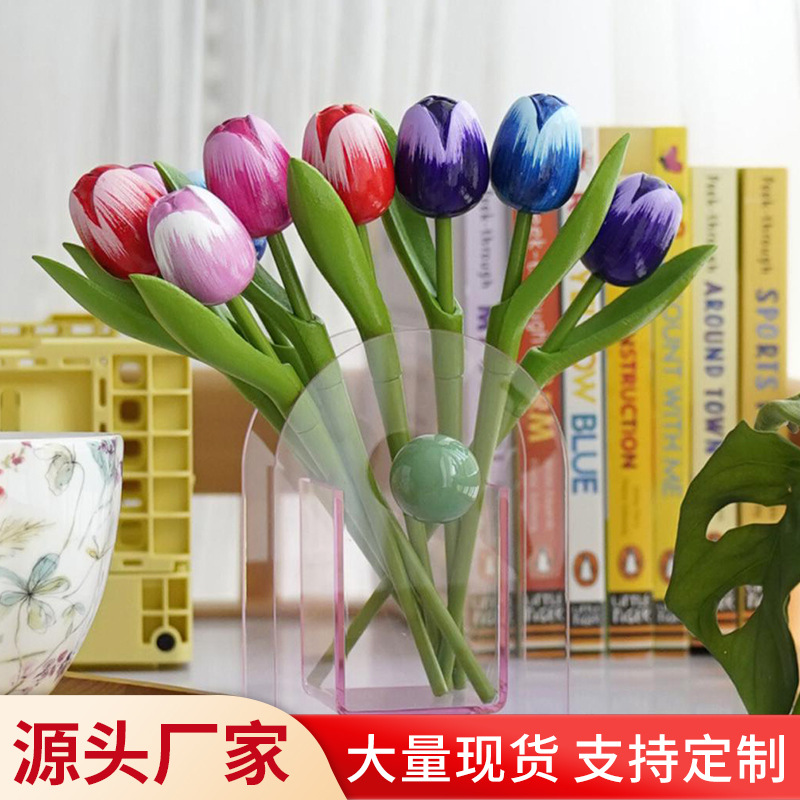 木质手工绘制纹理郁金香居家装饰多色可爱小号装饰仿真花插花摆件