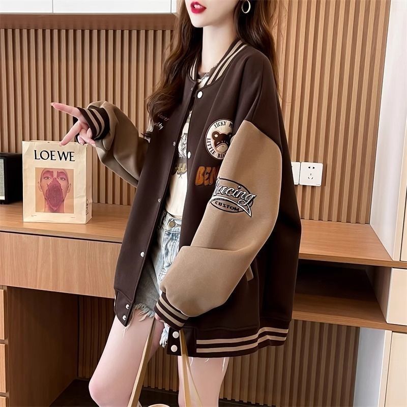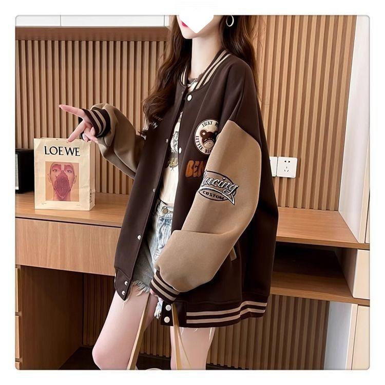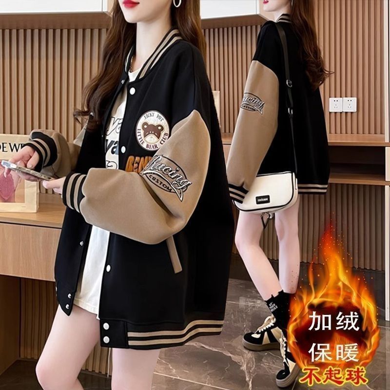 秋冬季加绒加厚卫衣外套女韩版开衫棒球服宽松慵懒风百搭长袖上衣
