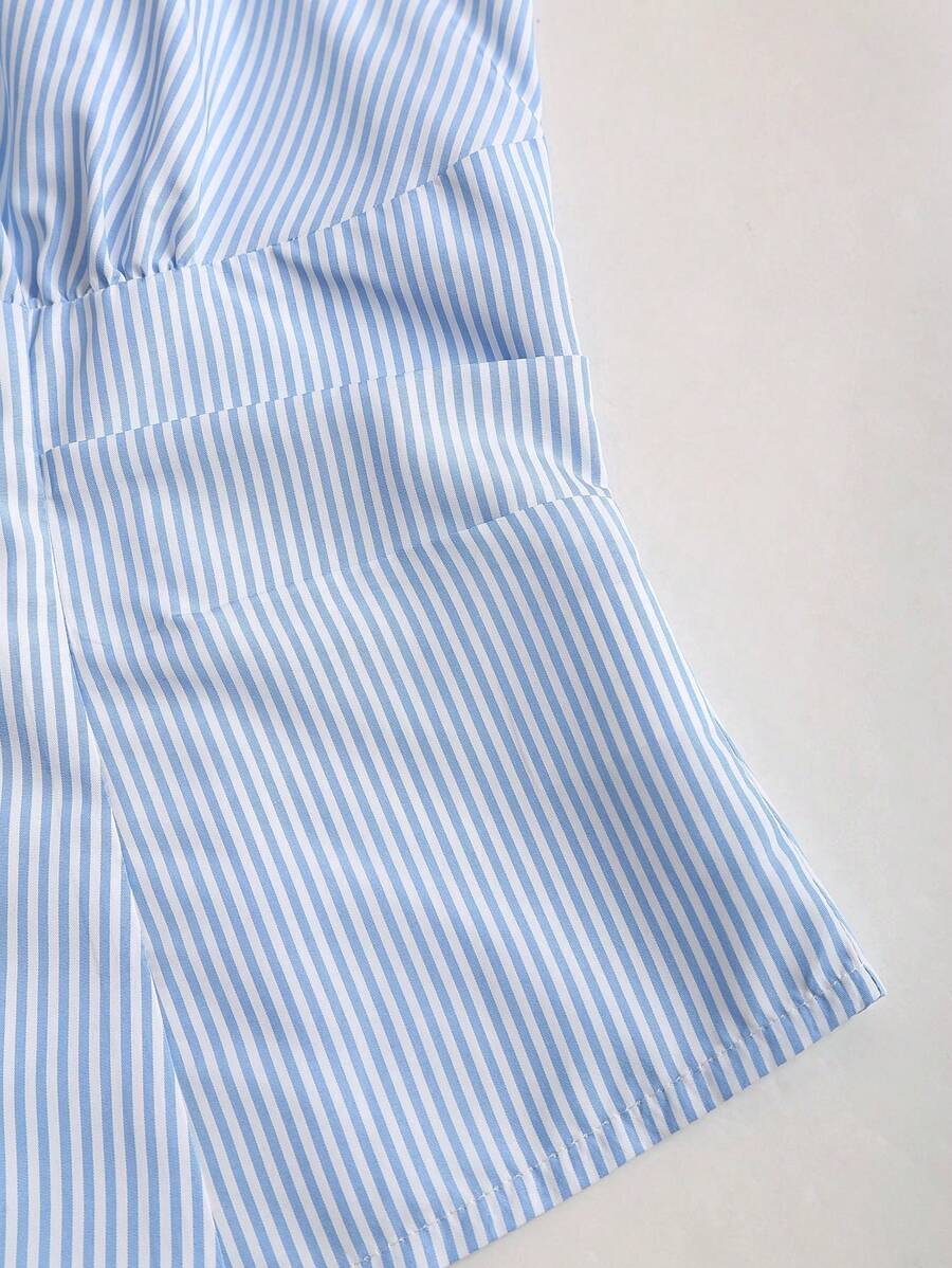 现货2025欧美外贸亚马逊甜辣风挂脖条纹漏后背蝴蝶结绑带无袖衬衫