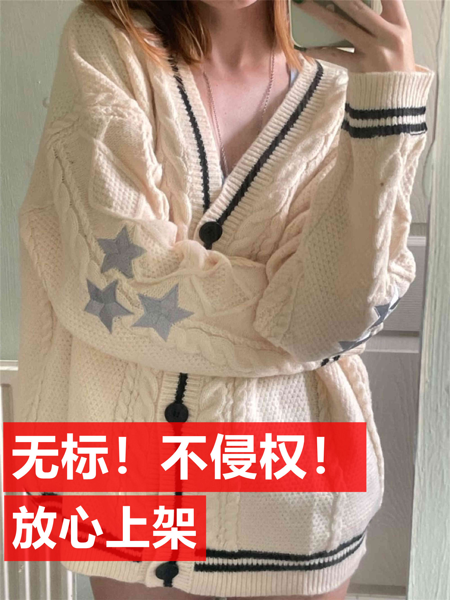 秋冬の欧米の婦人服のvネックの長袖の星の刺繍の単列はボタンを掛けます。