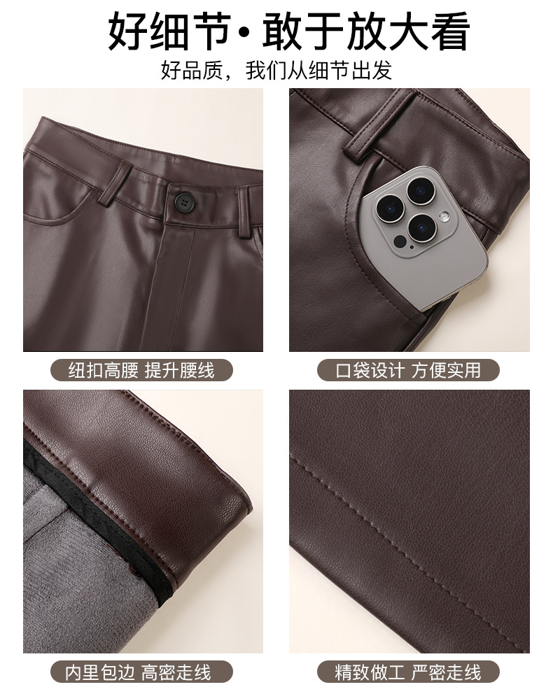 子羊のベルベットのズボンの女性はベルベットを着てズボンを厚くして腰がやせているpu皮防風保温ズボンの対外貿易卸売りをしている