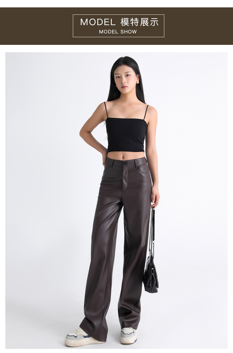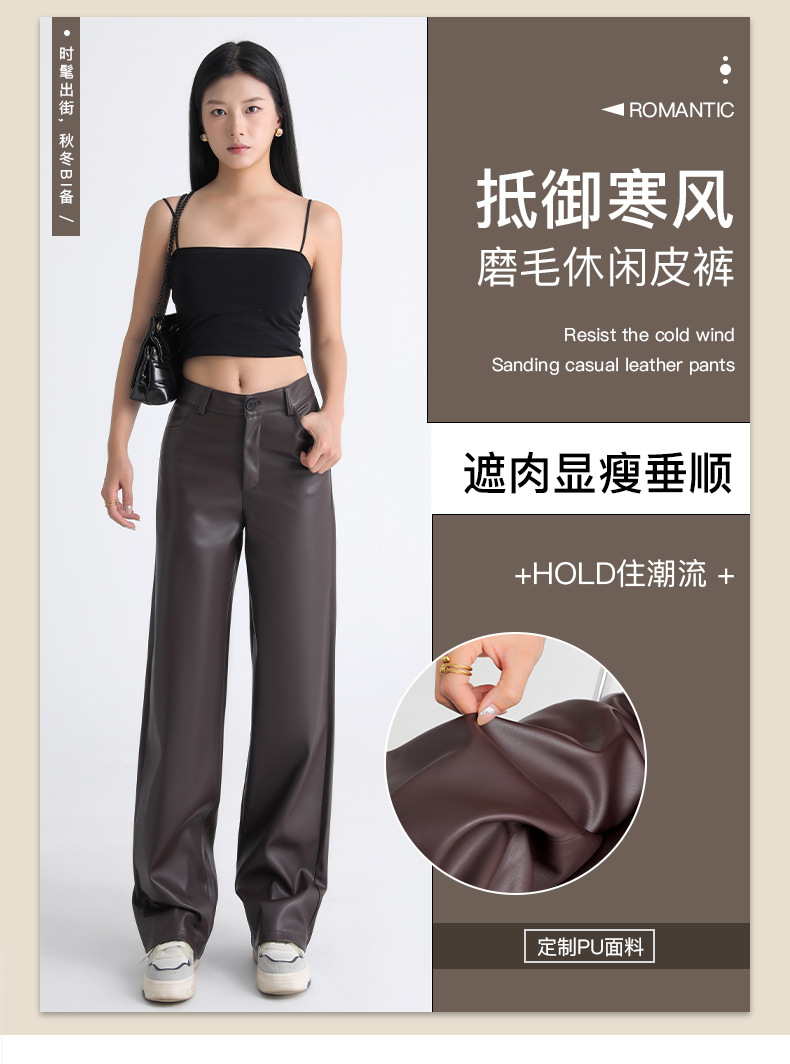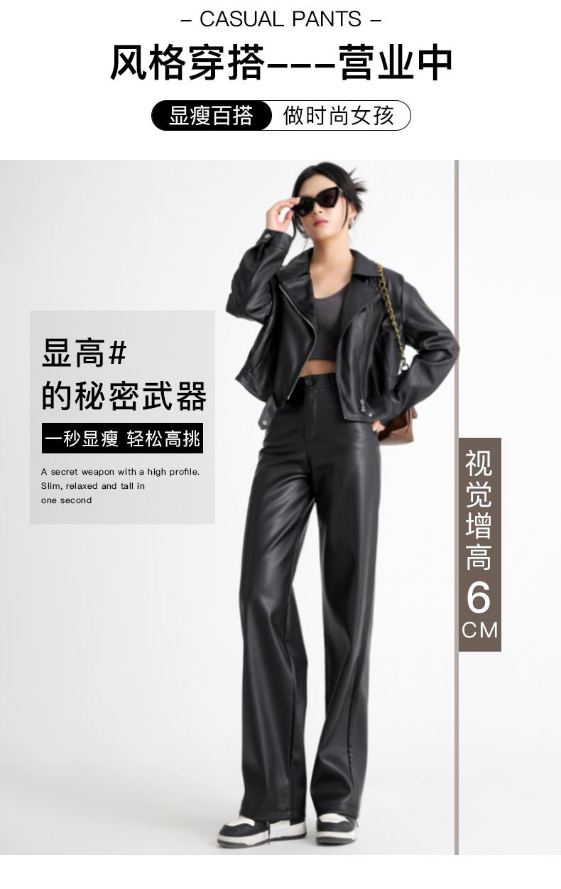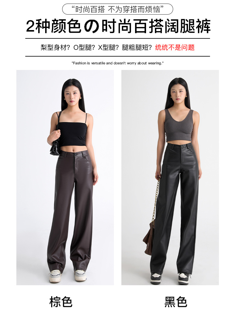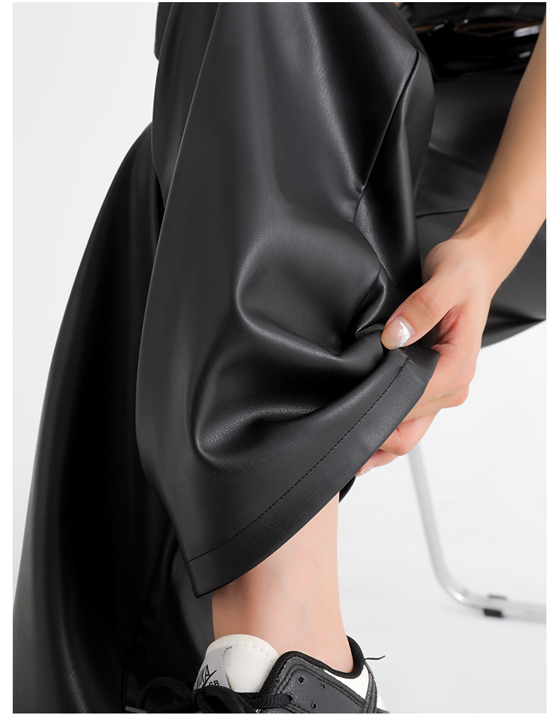 新款美式PU皮裤女春秋冬高腰显瘦垂感休闲直筒裤宽松西装阔腿裤子