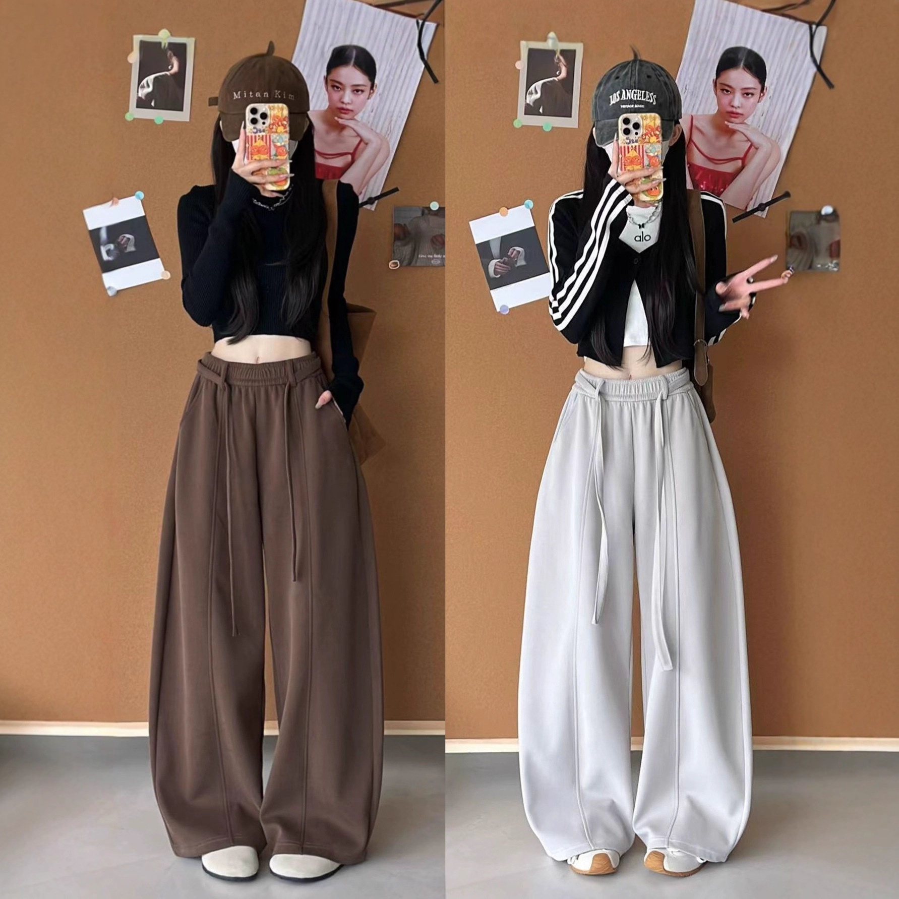 琥珀流光风抽绳弯刀裤女秋季2025新款高腰窄版阔腿裤宽松休闲卫裤