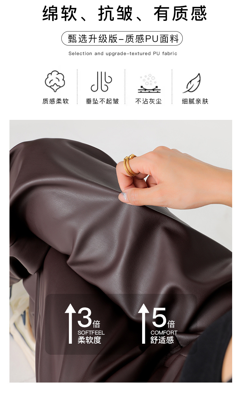 革ズボンの女性は秋冬にベルベットを着て腰の高いレギンスを厚くして痩せている防風防水足pu長ズボンを着ている