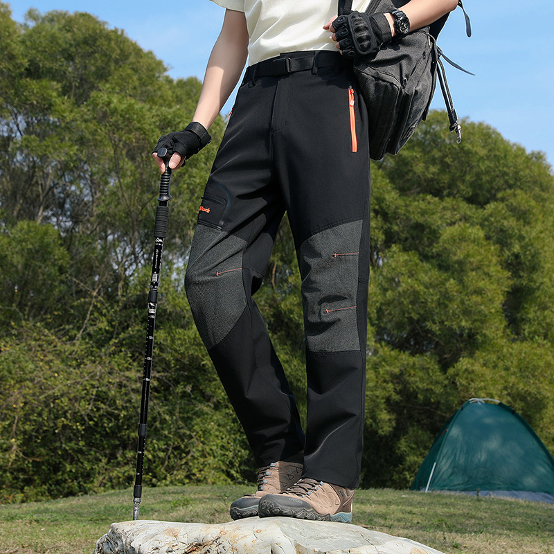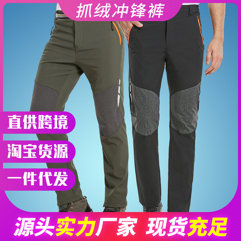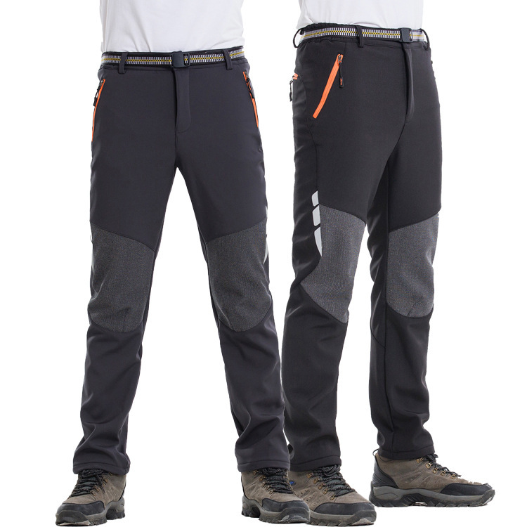 秋冬カップルのソフトシェルパンツ防風防水運動は、アウトドアにベルベットをつけて保温して通気している登山突撃ズボン男
