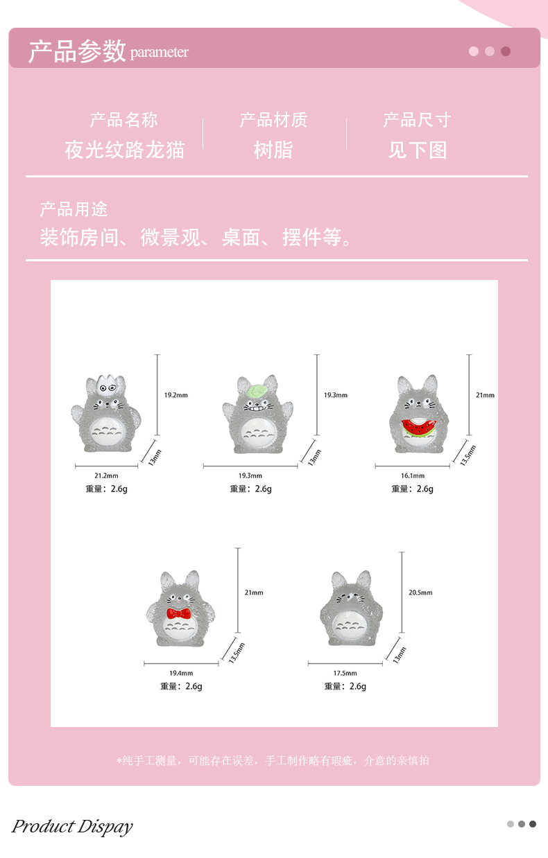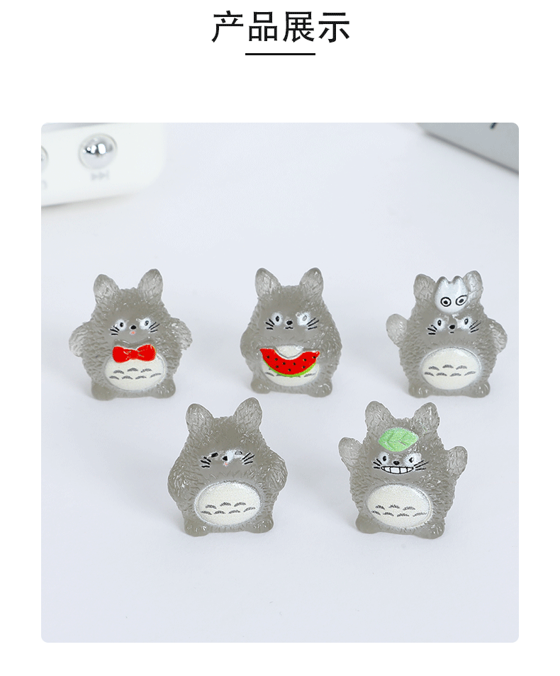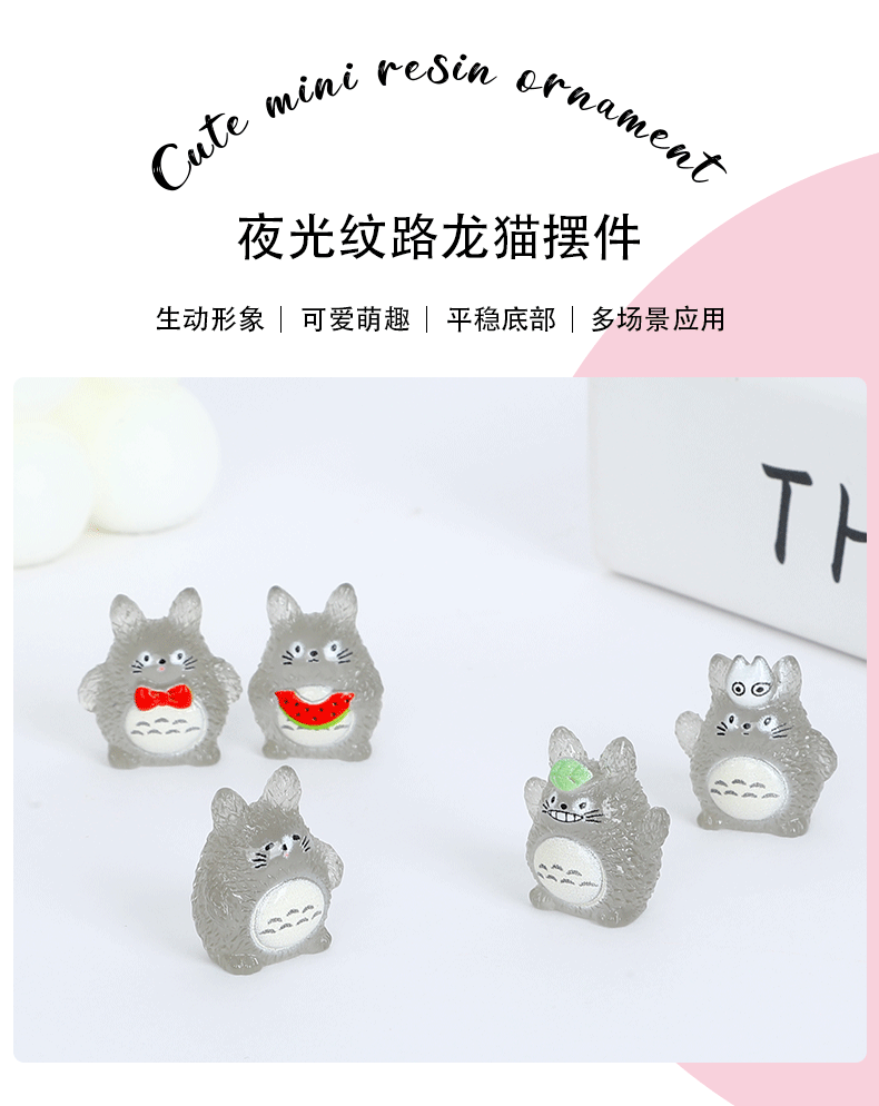 微景观卡通夜光纹路龙猫摆件 diy饰品配件树脂工艺桌面车载小摆件