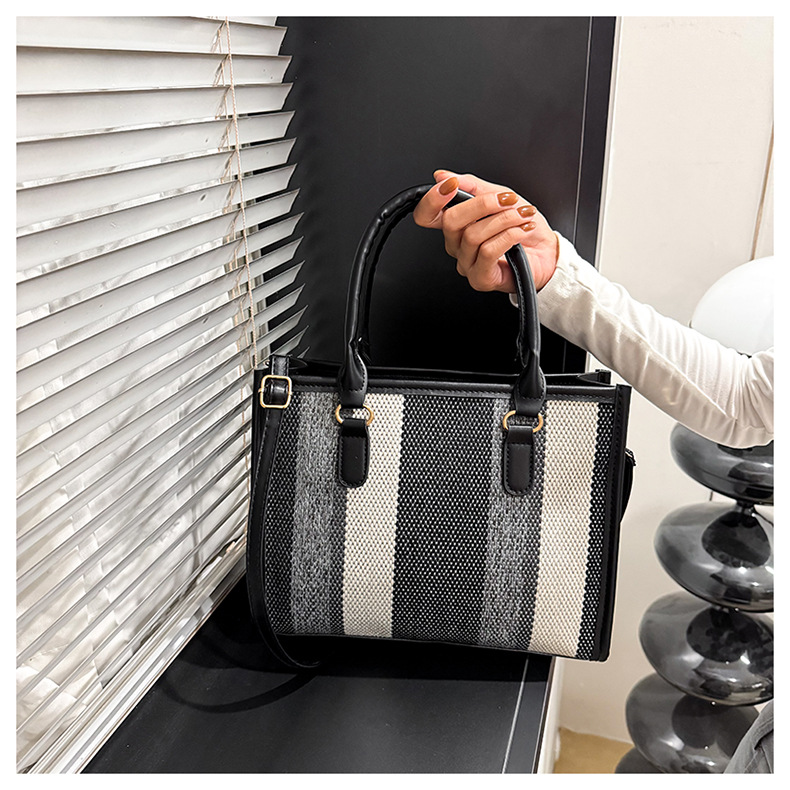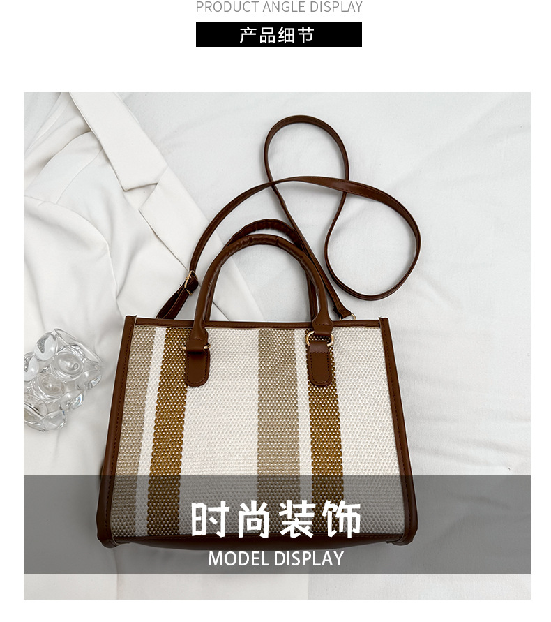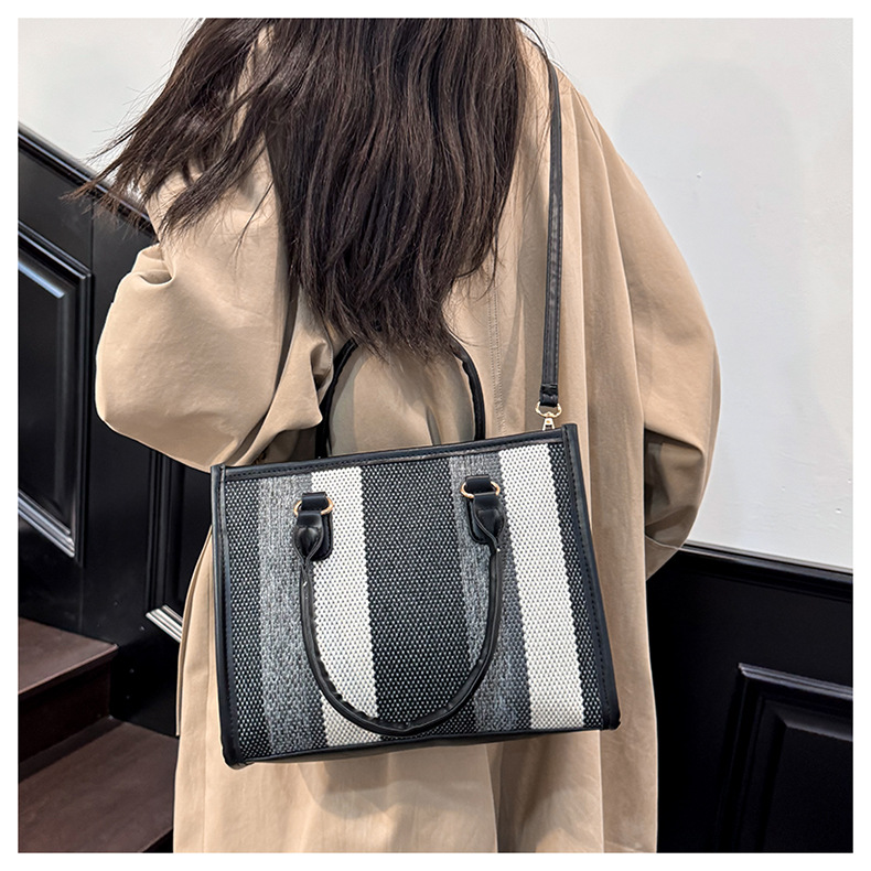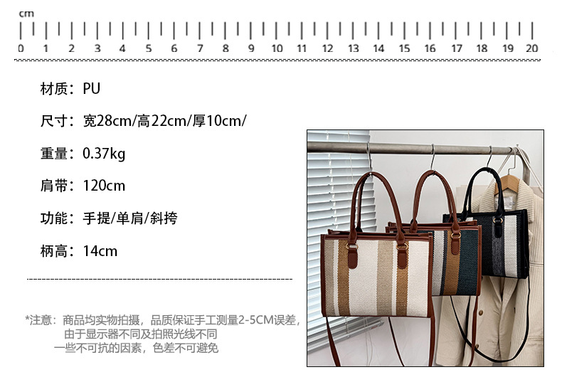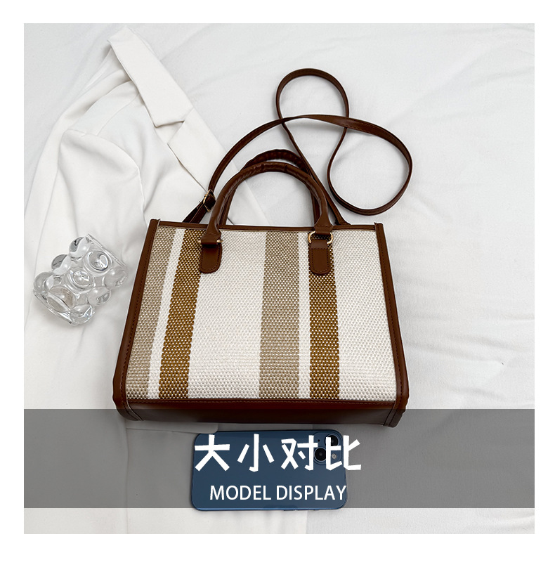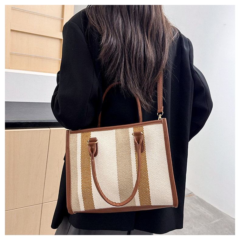 时尚条纹2025新款潮流撞色大容量托特女单肩手拎斜挎通勤大包包女