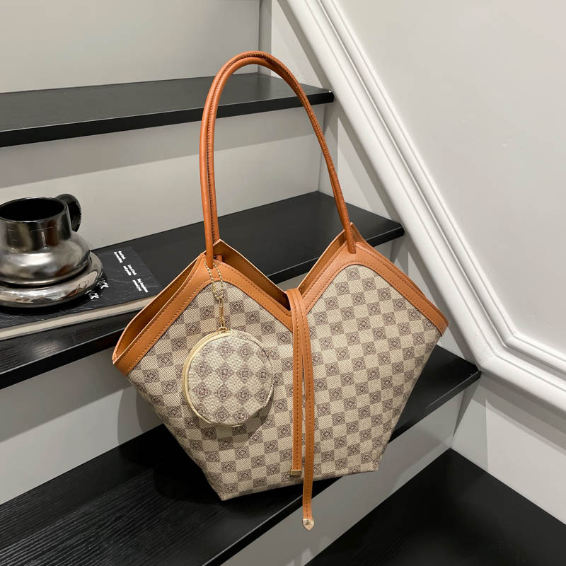 韩系格子印花秋冬新款2025质感休闲大容量复古时尚轻奢通勤托特包