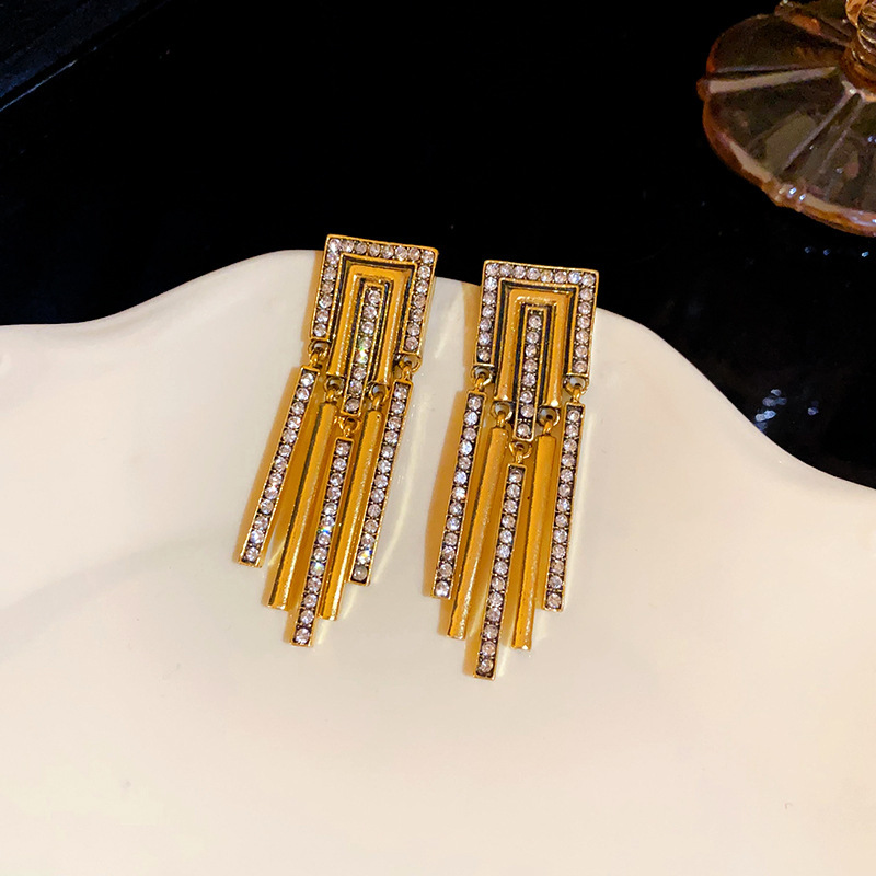 中古のヴィンテージのアクセサリーの銀の針の幾何学のイヤリングの女性の軽豪華な高級感のピアスの気質のファッションの爆発的なイヤリング