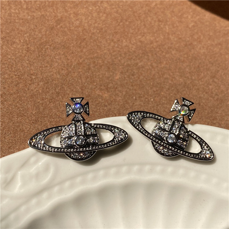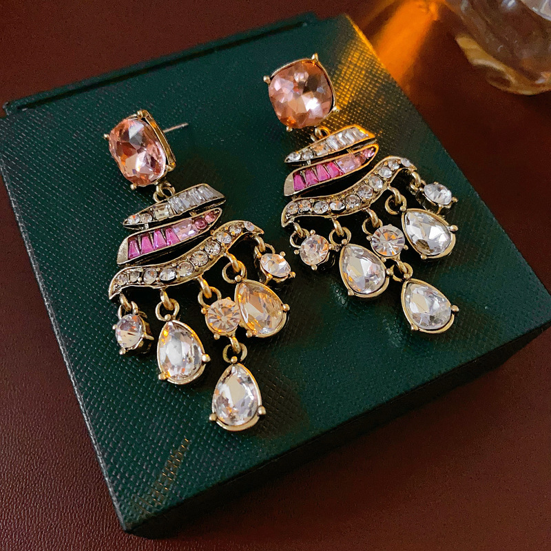 复古银针镶钻椭圆形耳环中古vintage时尚气质耳钉轻奢高级感耳饰