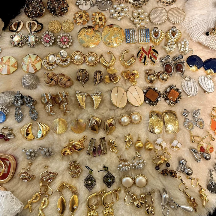 vintage中古银针滴油花朵多层耳钉轻奢高级感耳环复古宫廷风耳饰