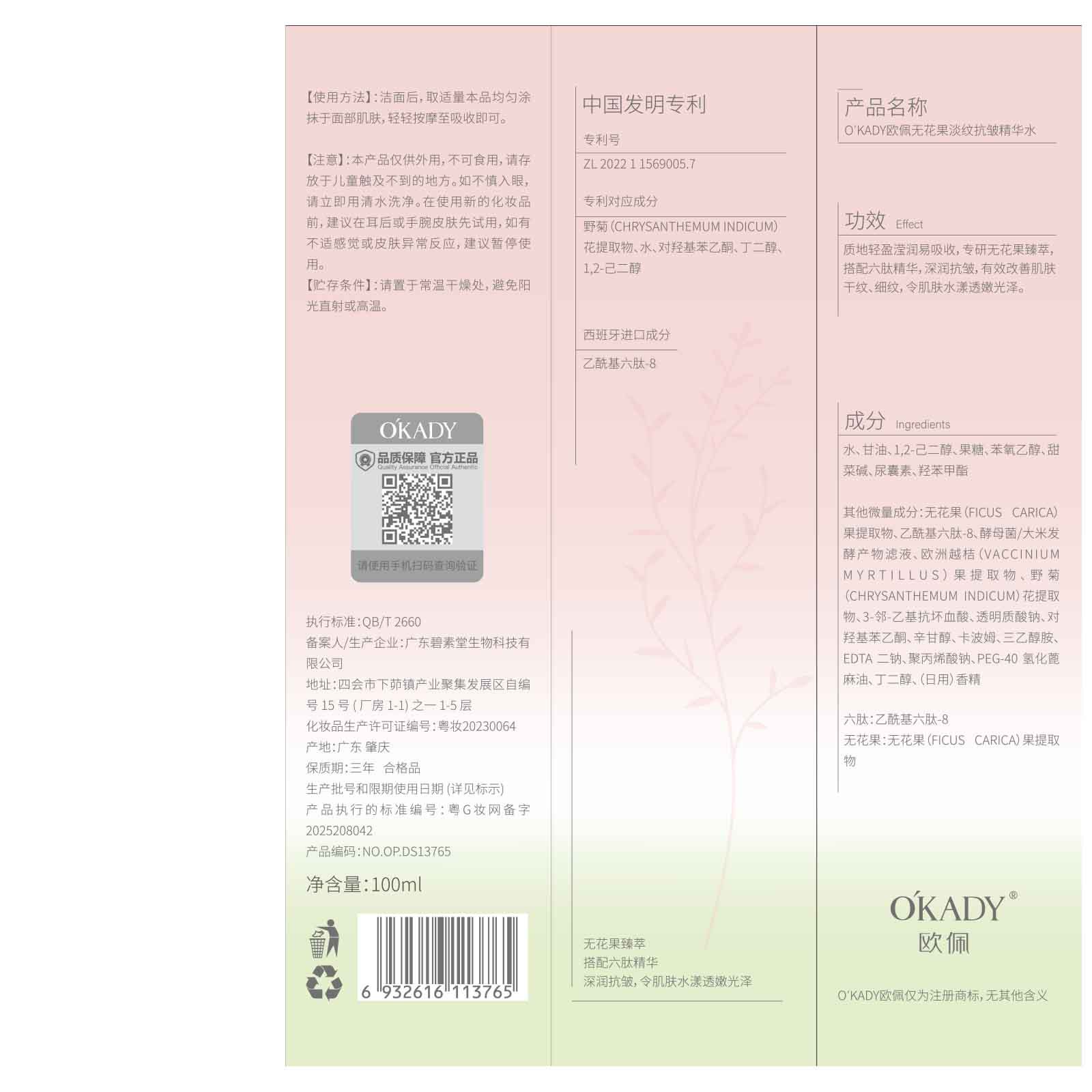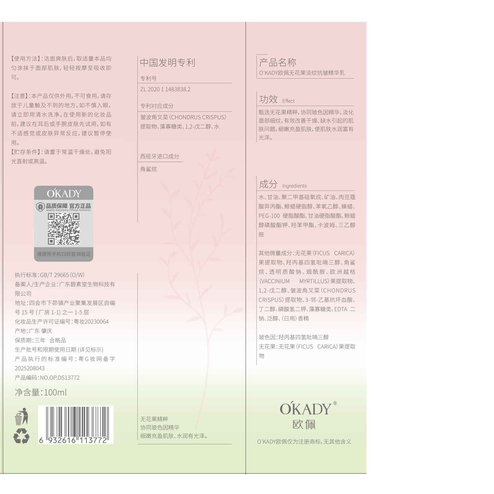 产品规格 欧佩无花果淡纹抗皱精华水100ml,欧佩无花果淡纹抗皱精华乳100ml