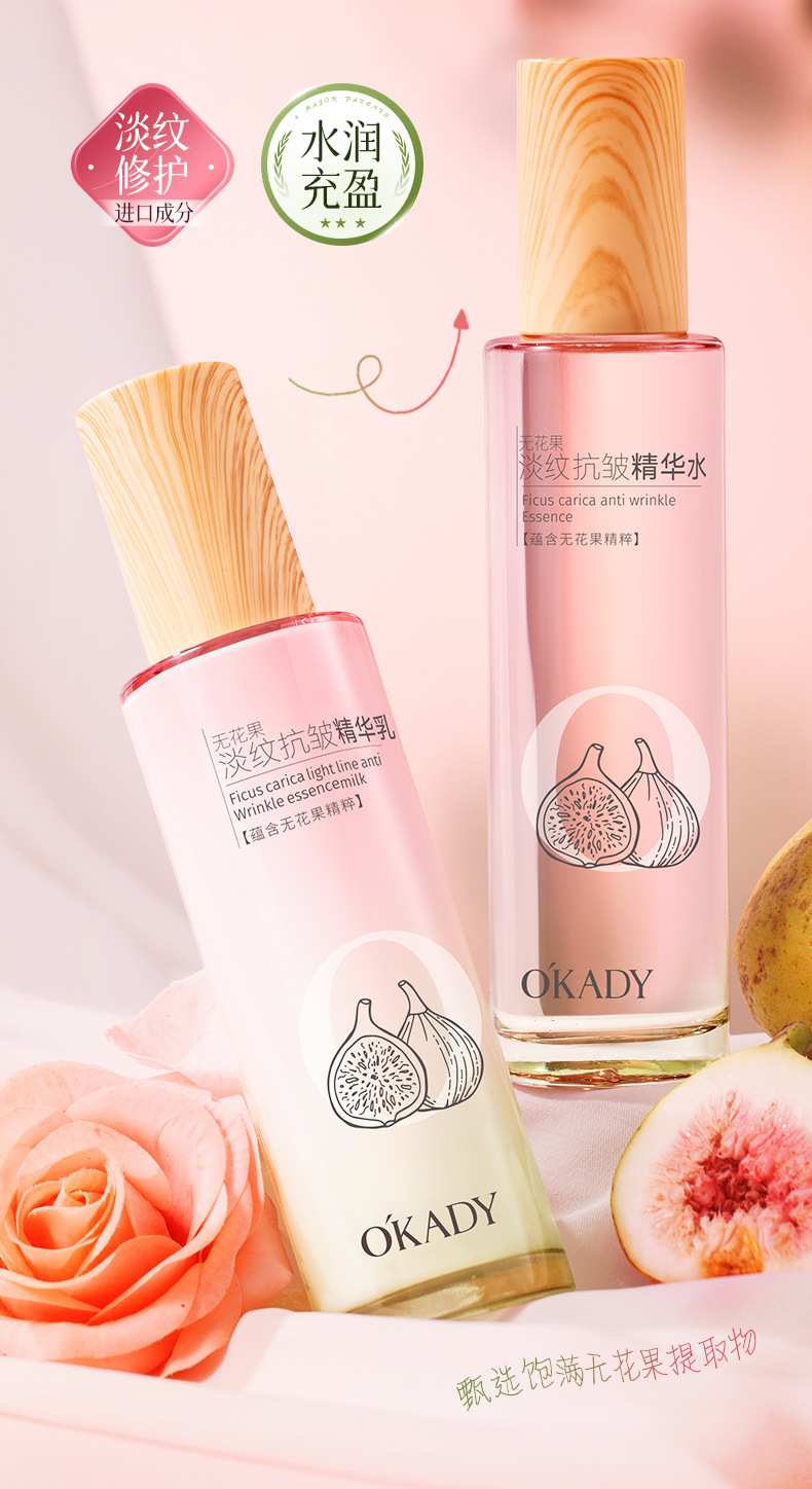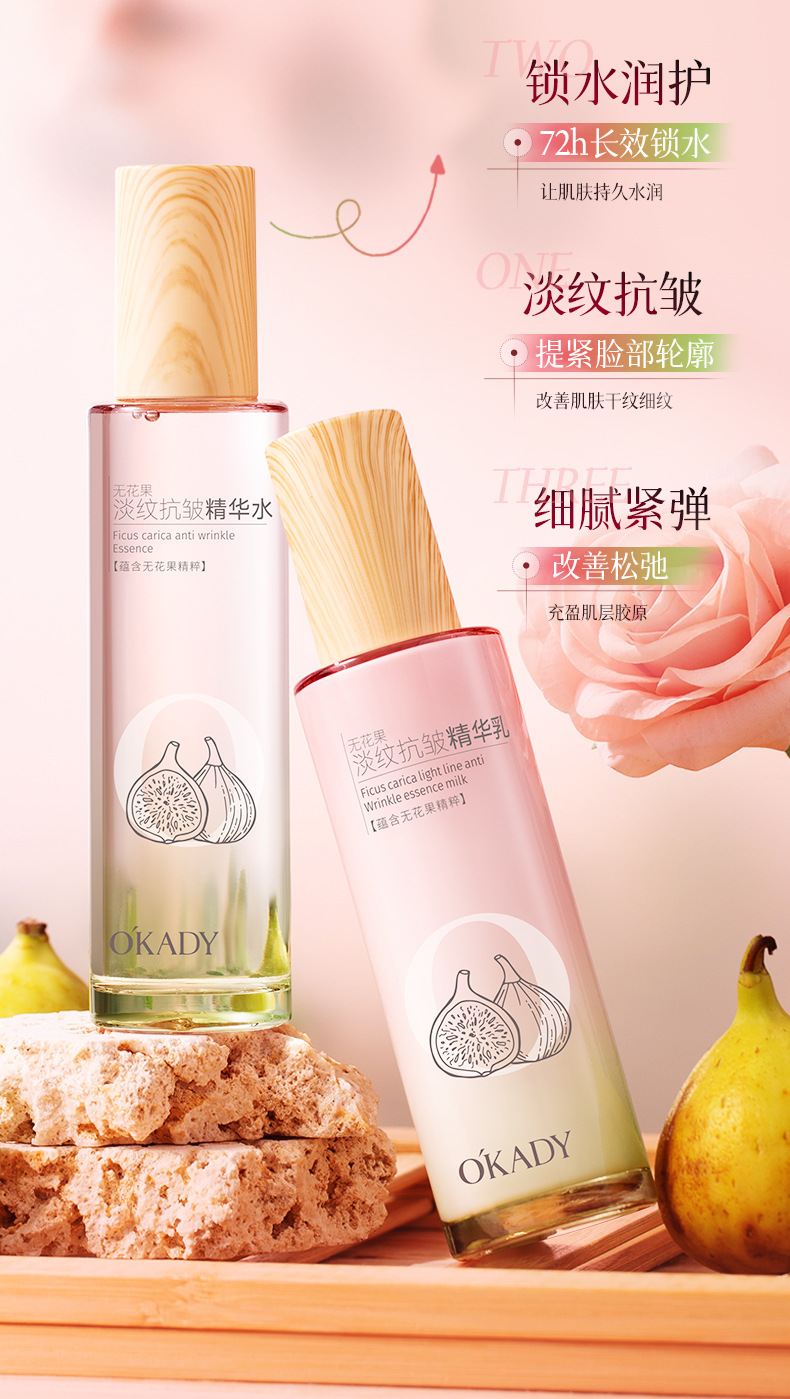 欧佩无花果淡纹抗皱精华水乳补水润肤提亮两件套厂家直销