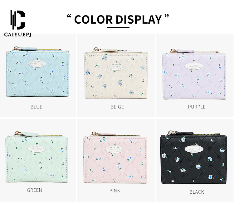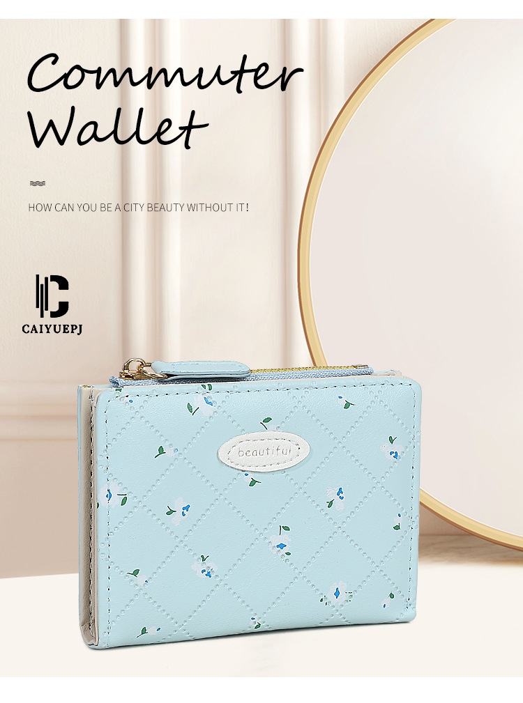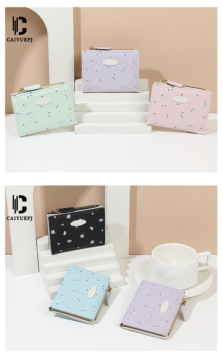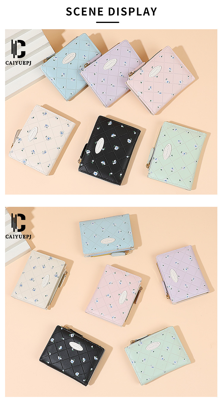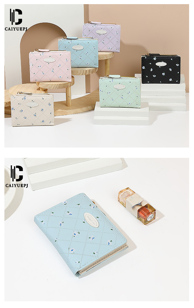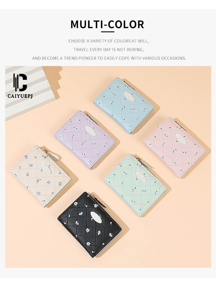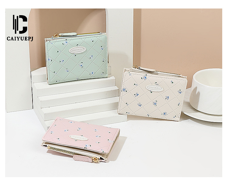 新款跨境高级感印花浅色女生钱包批发百搭零钱包碎花清新甜美短夹