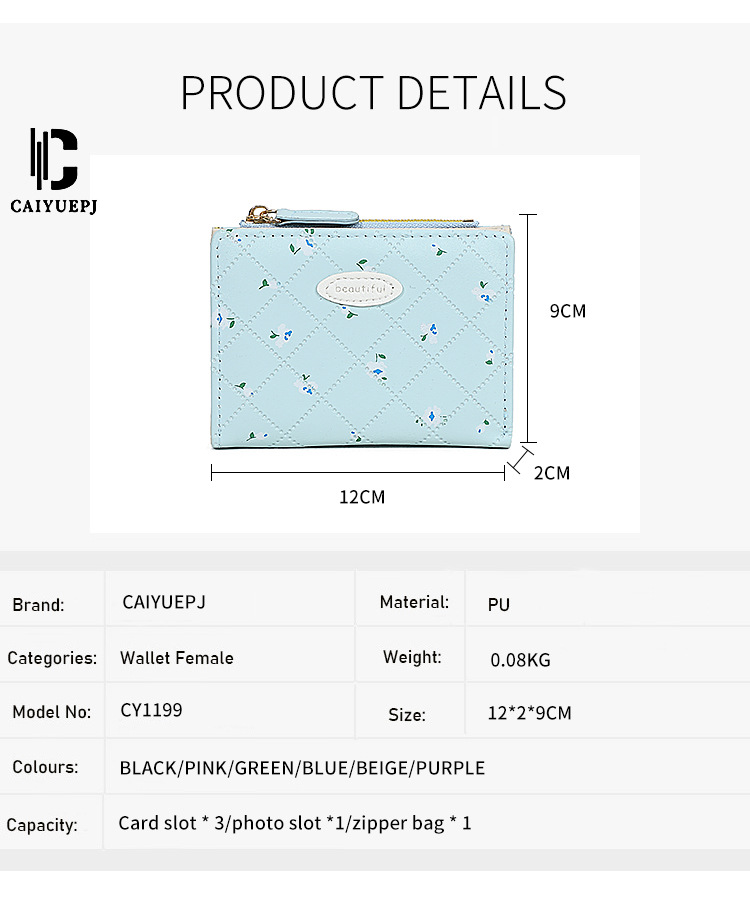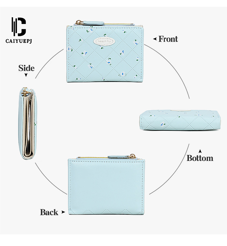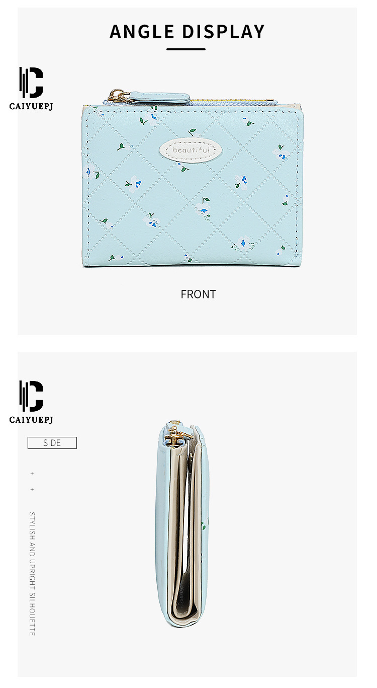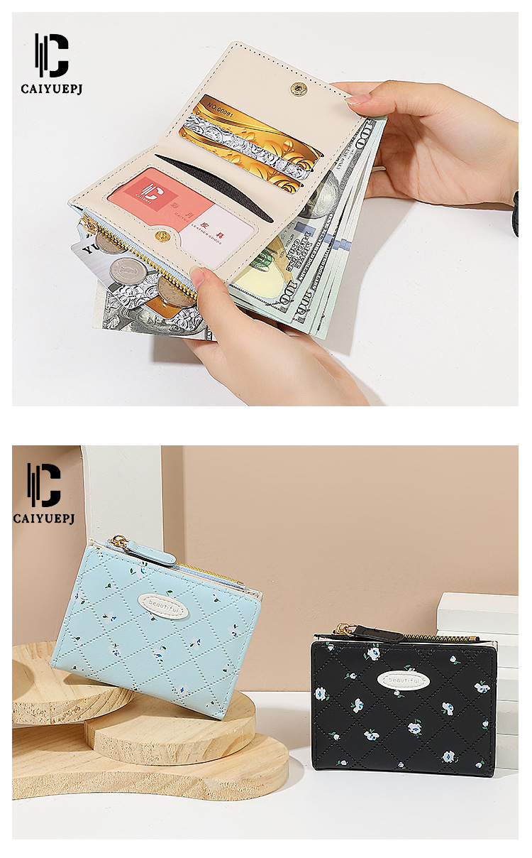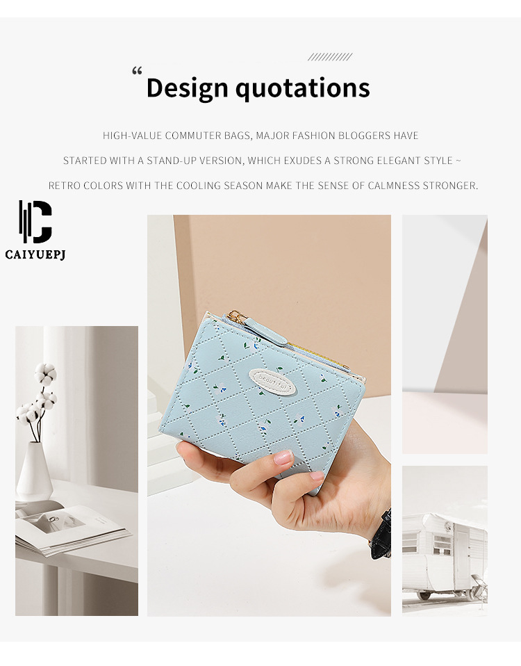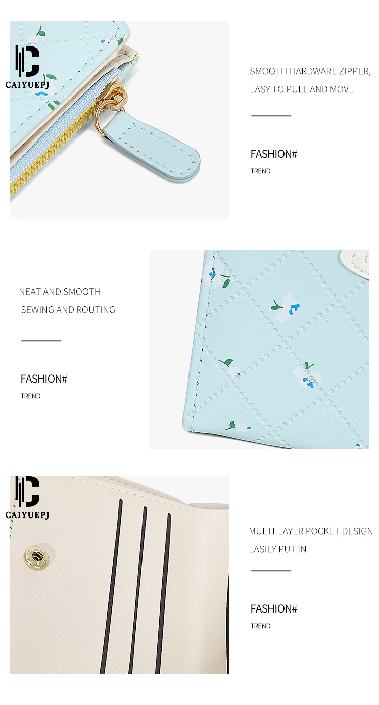 新款跨境高级感印花浅色女生钱包批发百搭零钱包碎花清新甜美短夹