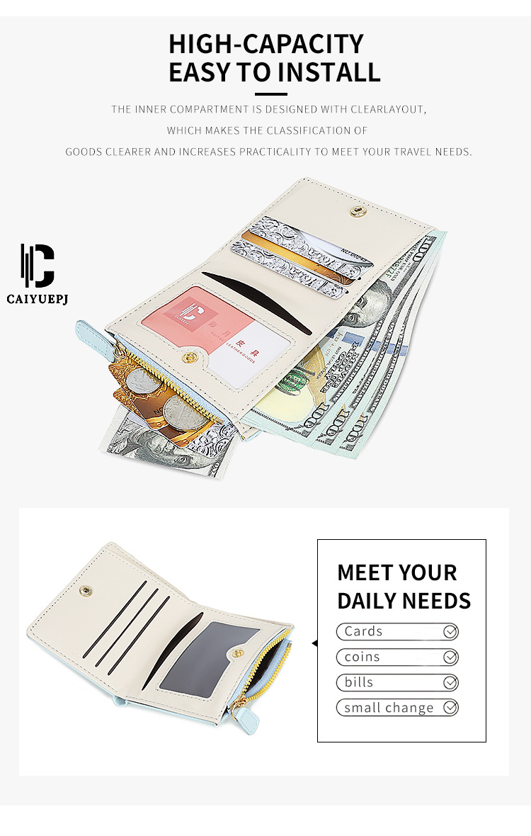 おしゃれでシンプルな女性の短い財布には、色の引き出しがついています。