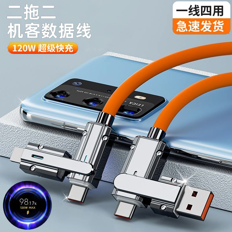 120W超速充データ線四合一適用リンゴPD華為Type-c車用二引き二充電線