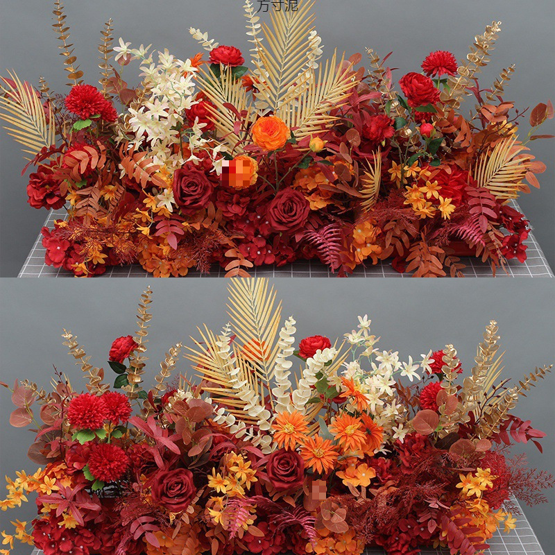 新しいウェディングスタイルのフラワーアレンジメント、模擬シルクフラワー、完成品の装飾、ユーカリフラワーアレンジメント、テーブルロードリード、ウェディングフラワーアレンジメント