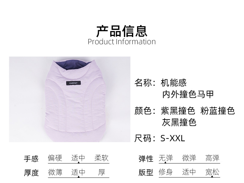 趣派机能感内外撞色马甲宠物服装秋冬款小型犬外套泰迪比熊雪纳瑞