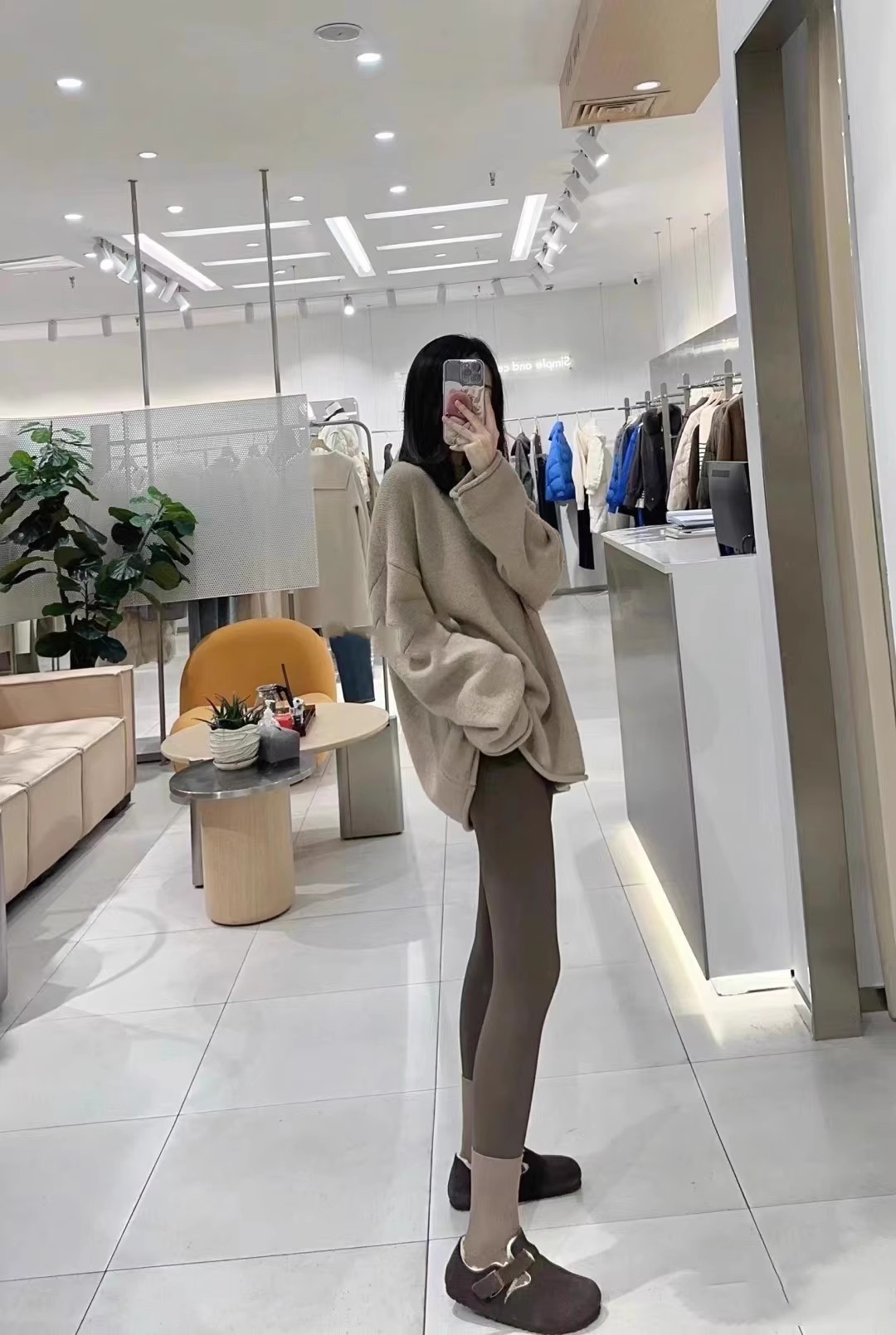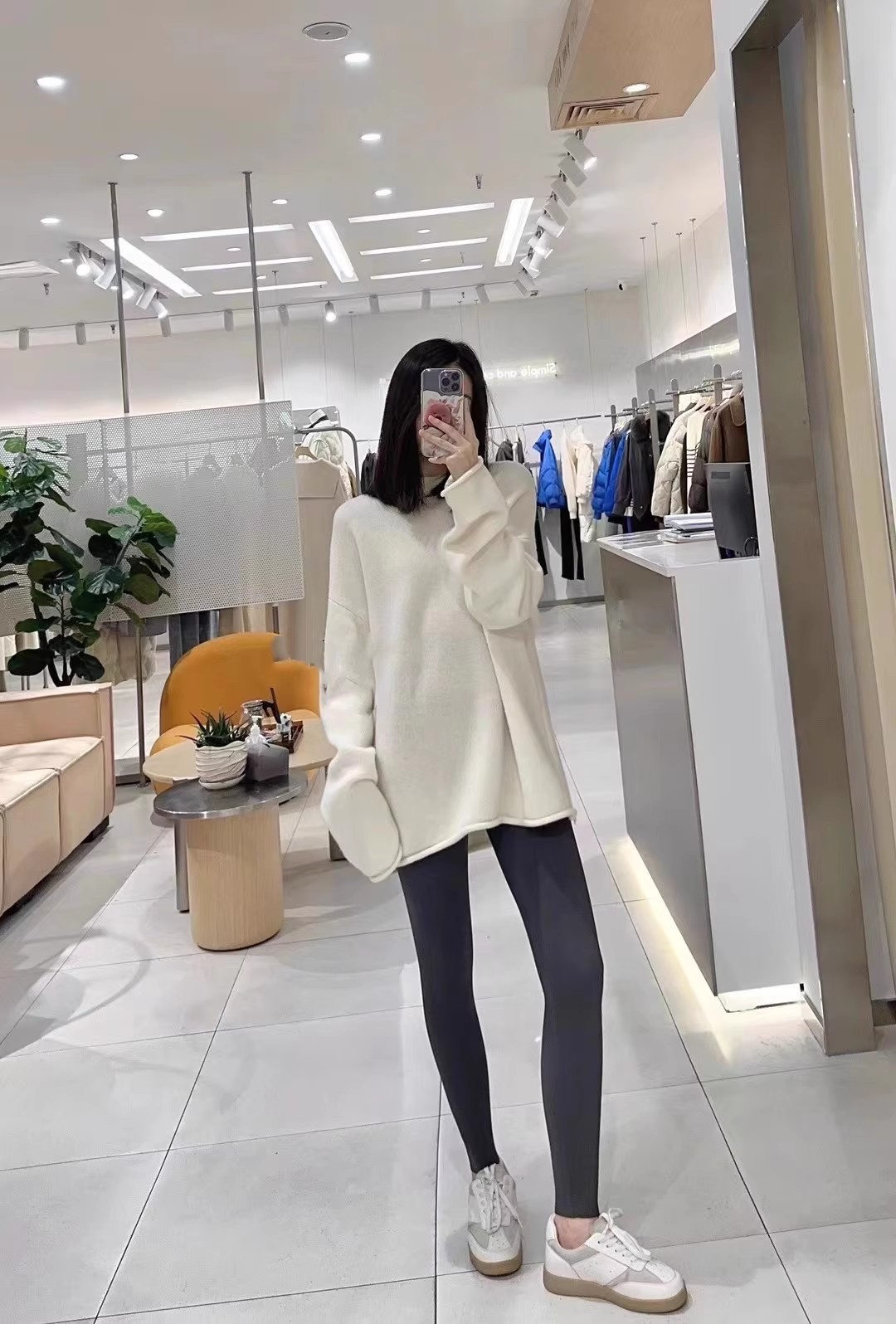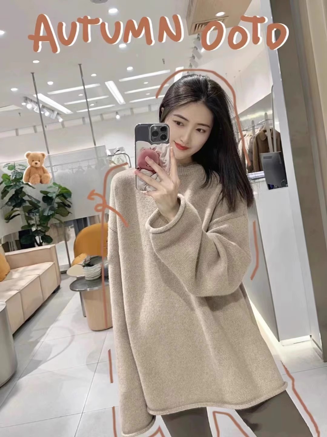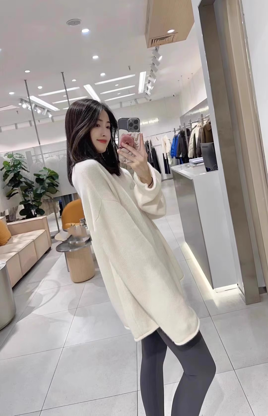 新款慵懒风软糯圆领毛衣中长款纯羊毛女保暖长袖休闲简约打底上衣