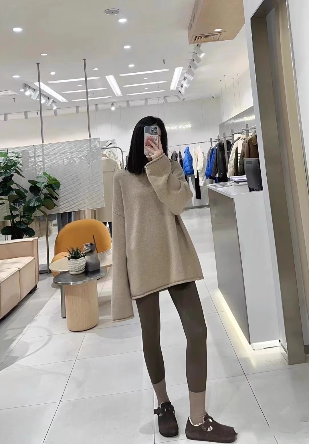 2024年秋冬の新型ミンクのセーターの女性の高襟の中にゆったりとしたカシミヤのニットの底のシャツを合わせて厚いです。