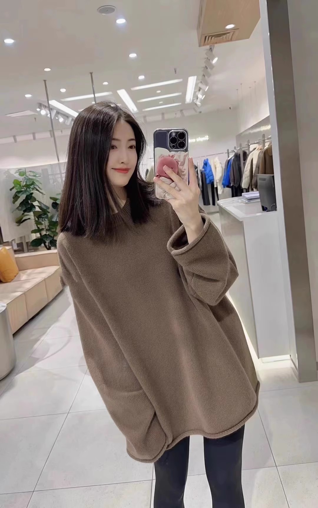 25秋冬新作 一流ブランド既製服 100%ウールセーター レディース ゆったりラウンドネック 多用途ニットセーター インナー/アウター