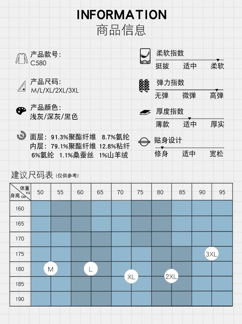 颜色 C580【黑色】蚕丝羊绒保暖裤,C580【浅灰】蚕丝羊绒保暖裤,C580【深灰】蚕丝羊绒保暖裤
