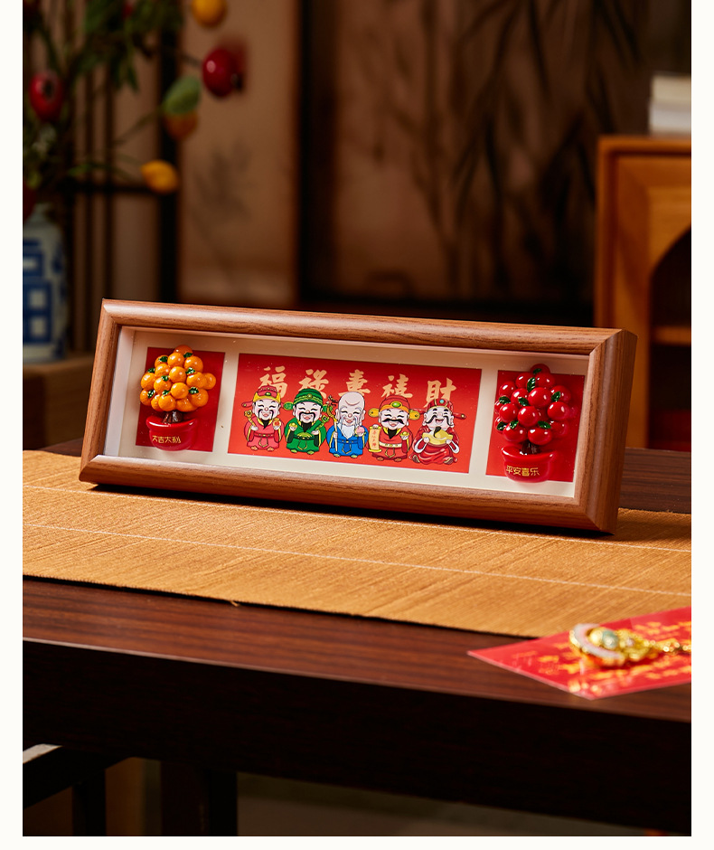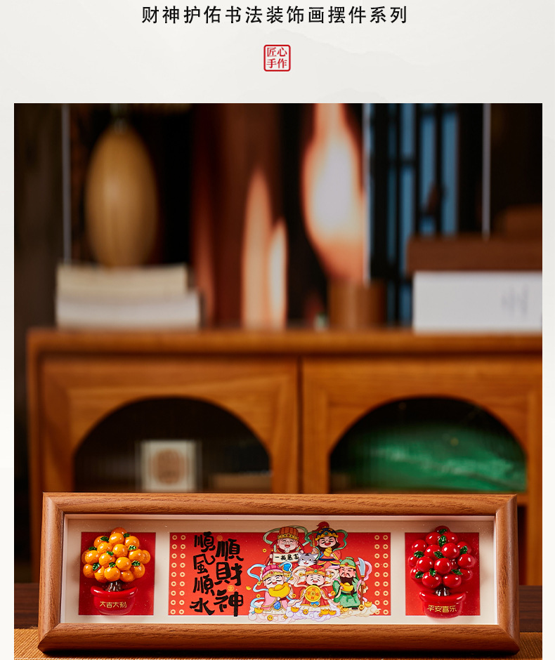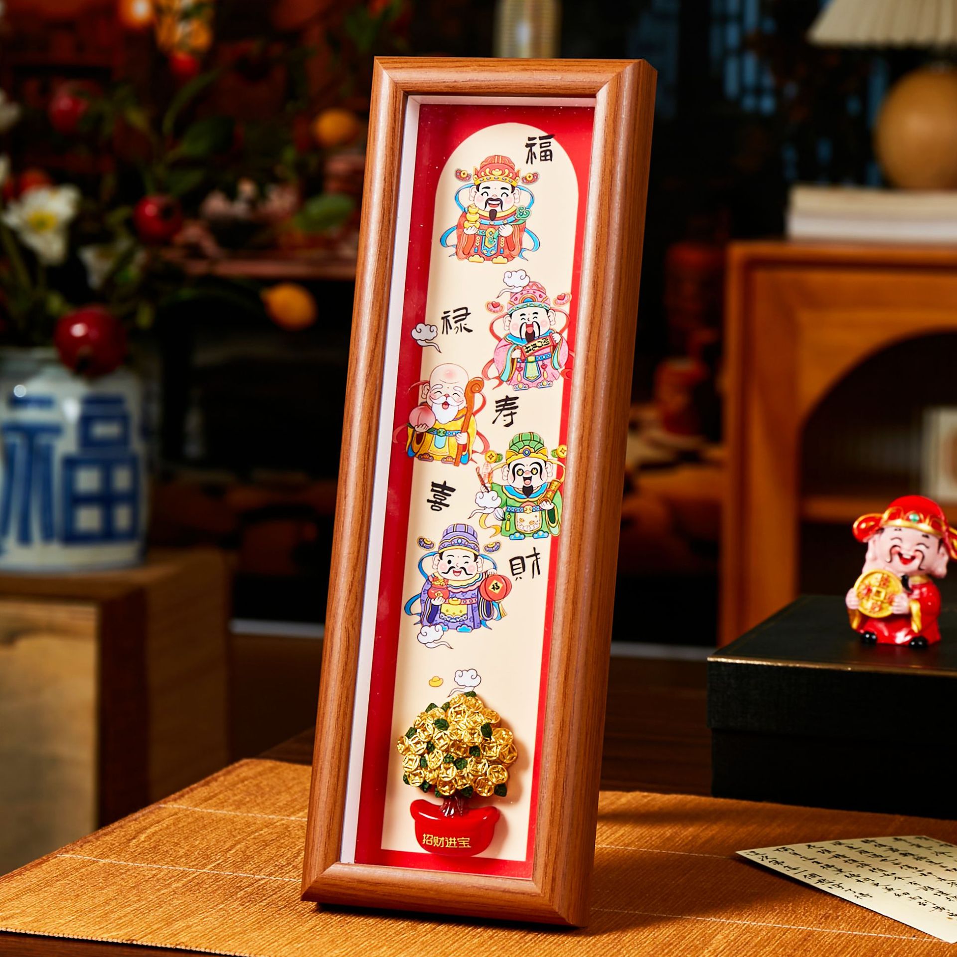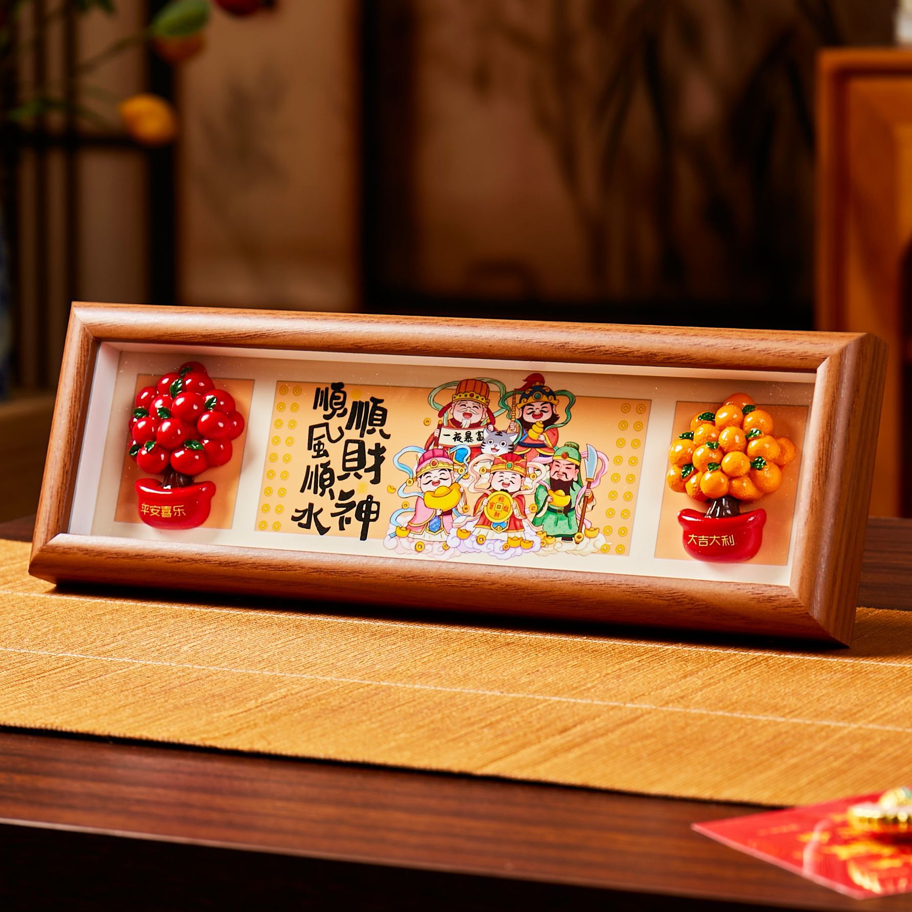 天官赐福顺风顺水五路财神相框摆件礼物客厅办公室桌面摆件摆台