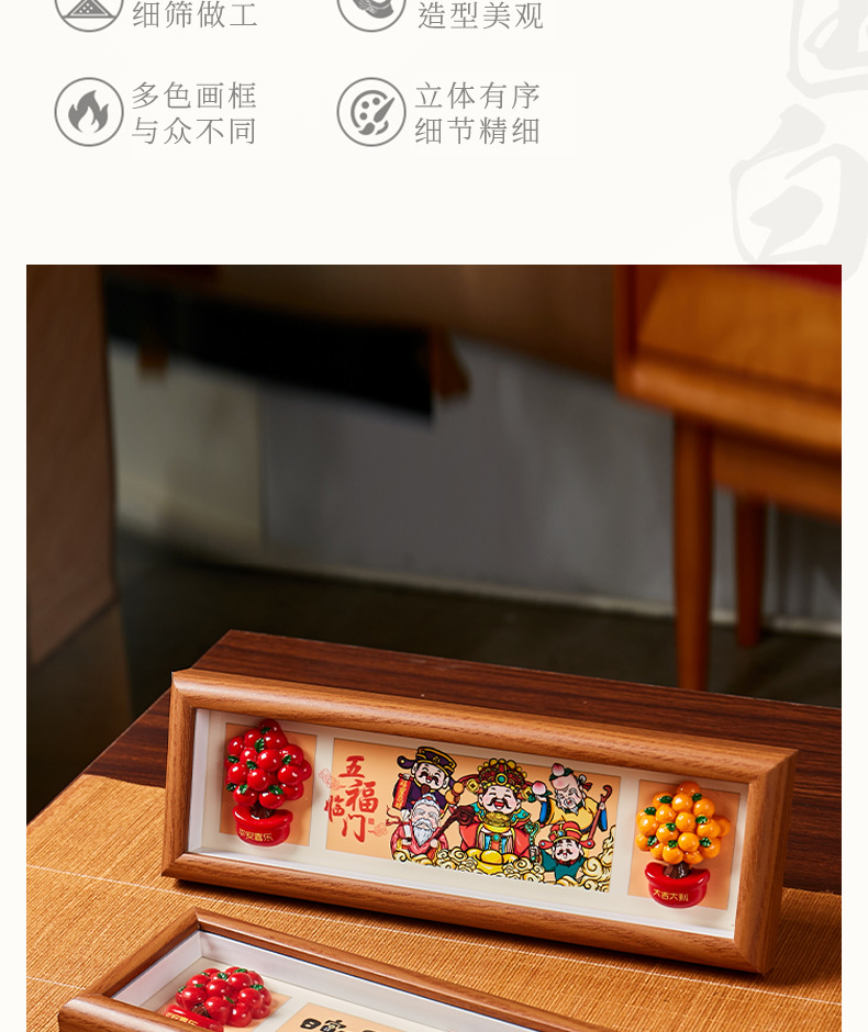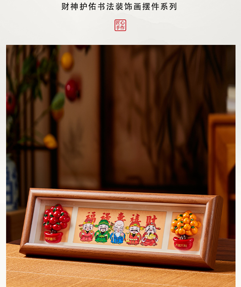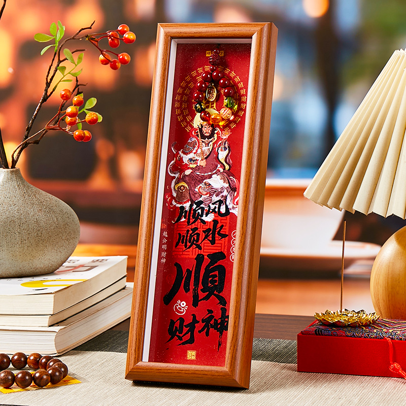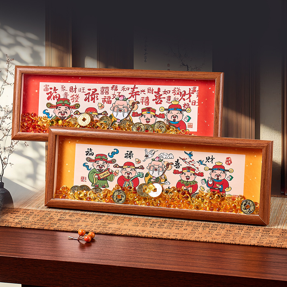 天官赐福顺风顺水五路财神相框摆件礼物客厅办公室桌面摆件摆台