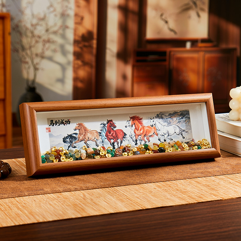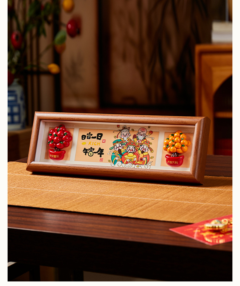 顺风顺水天官赐福手串木质相框摆件礼物客厅办公室桌面摆件摆台