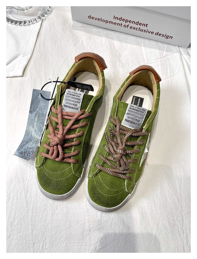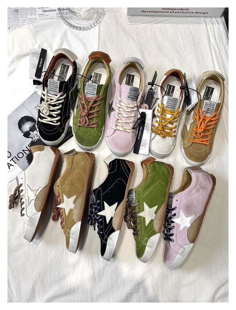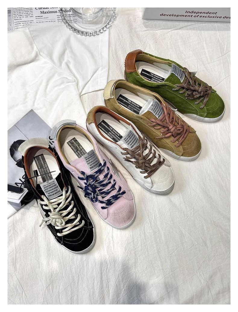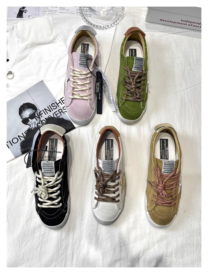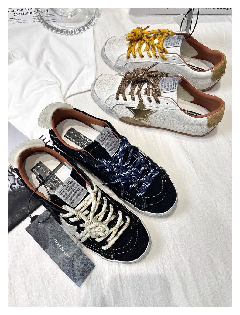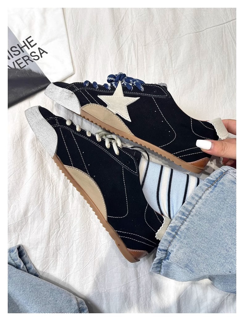 牛皮版~复古星星小脏鞋系带平底板鞋女百搭运动休闲鞋做旧德训鞋