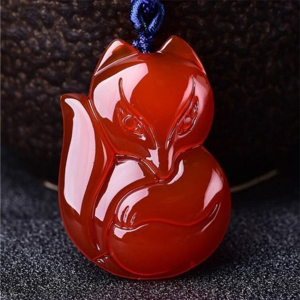 瑪瑙の氷種の赤い瑪瑙の玉の髄の小さい狐のペンダントのペンダントのペンダントのアクセサリーのネックレスの女性の金は掛け縄を送ります。