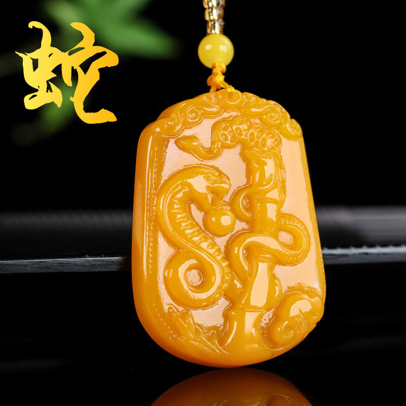天然黄龍玉ペンダント十二生肖蛇守護神本命年プレゼント黄色玉ペンダントネックレス男女