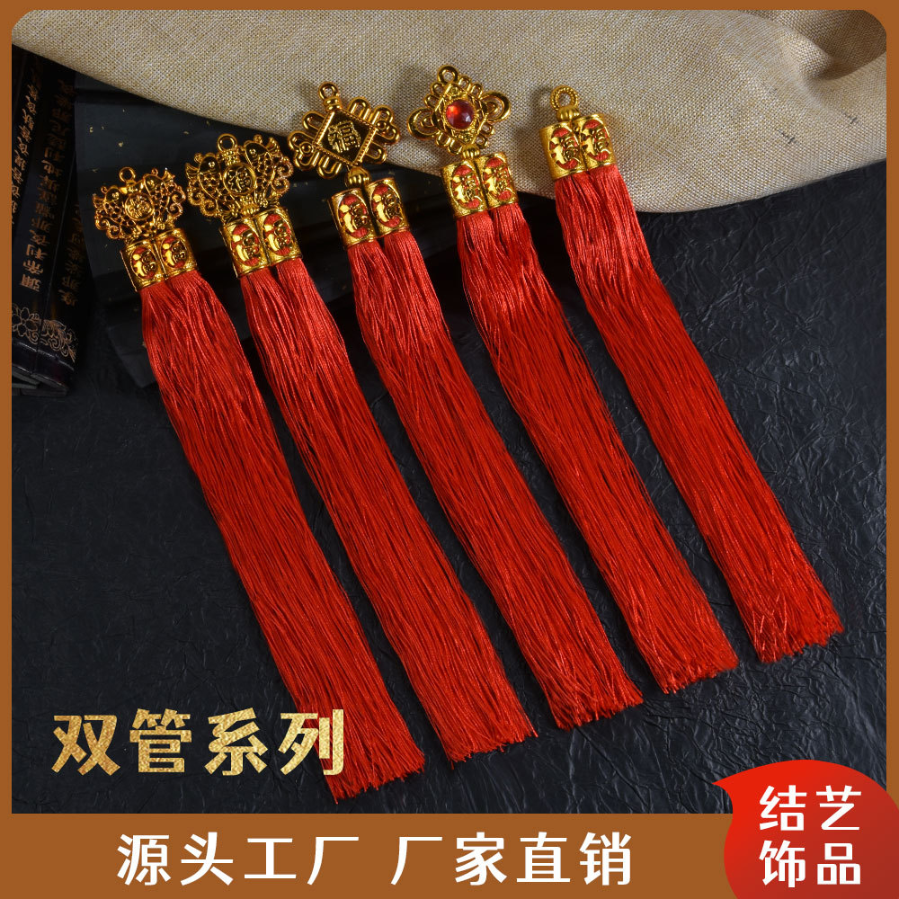 長い金の帽子の穂子の中国は福の字の双管のフリンジのお祝いの用品のペンダントの部品の中国はフリンジの卸売りを結びます。