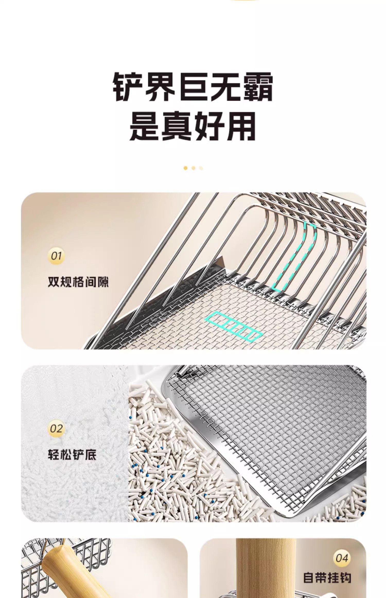 猫砂铲二合一金属不锈钢细孔猫屎铲子矿砂豆腐砂网铲大号铲屎神器