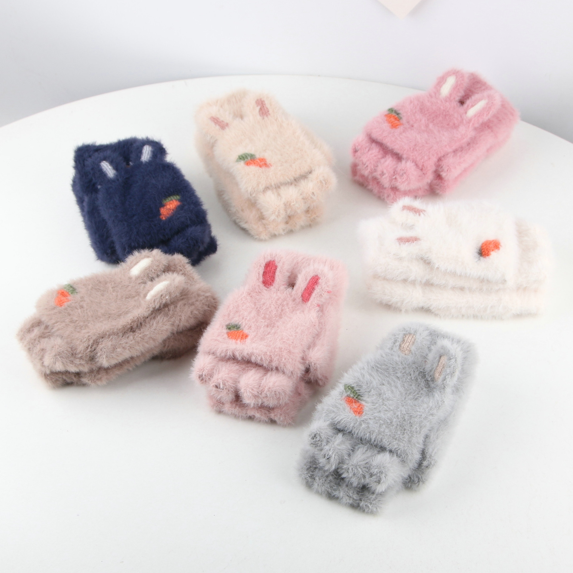 子供用手袋秋冬のベルベットカバー半指手袋小学生が字を書く保温手袋
