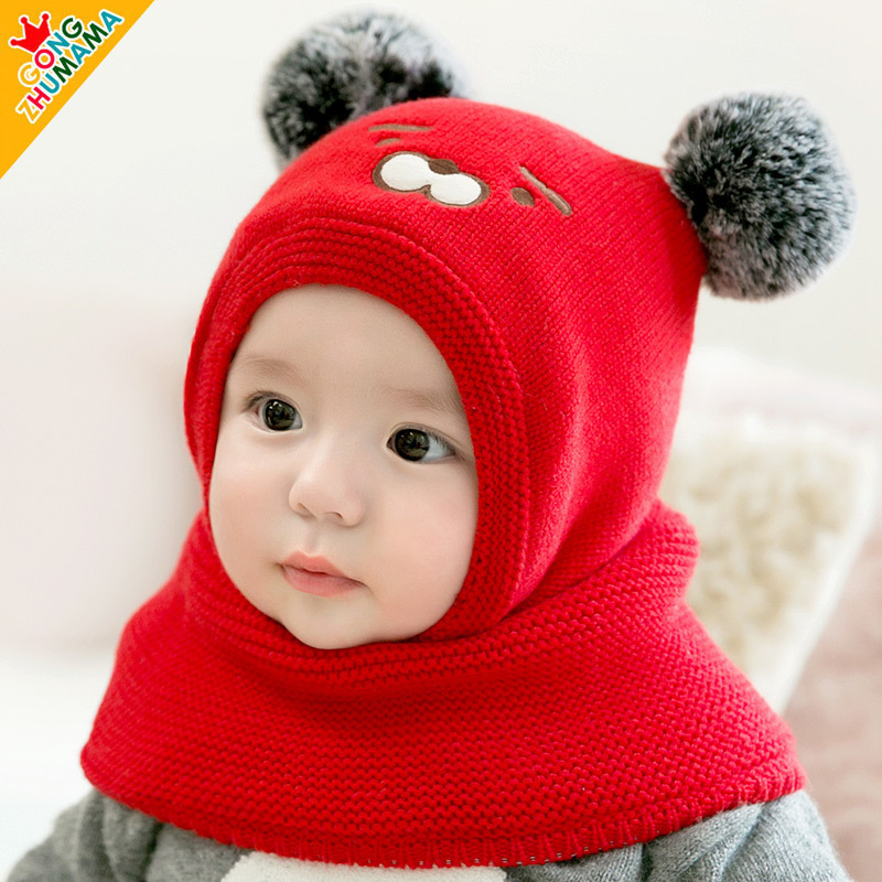 ベビー帽子秋冬男女赤ちゃん4-12ヶ月-30ヶ月毛糸帽子1-2歳ベルベット連体マフラー