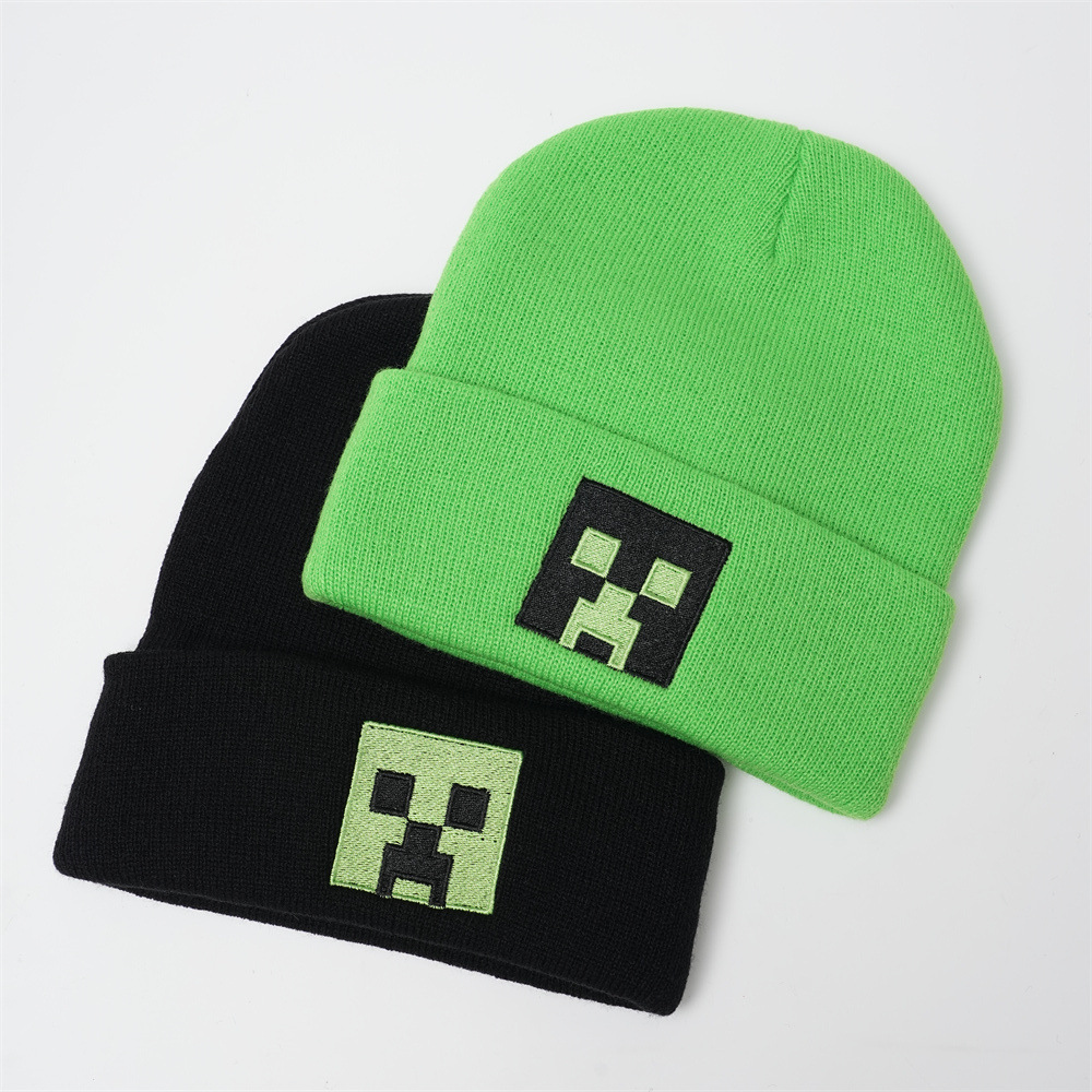 我的世界游戏刺绣针织帽秋冬季男女保暖毛线套头帽子圣诞节包头帽